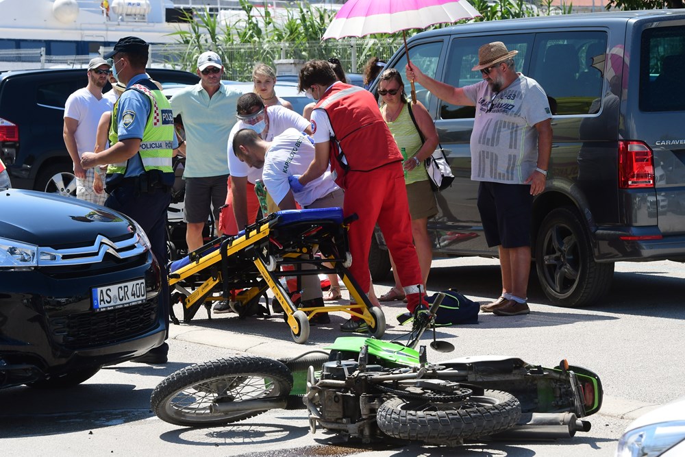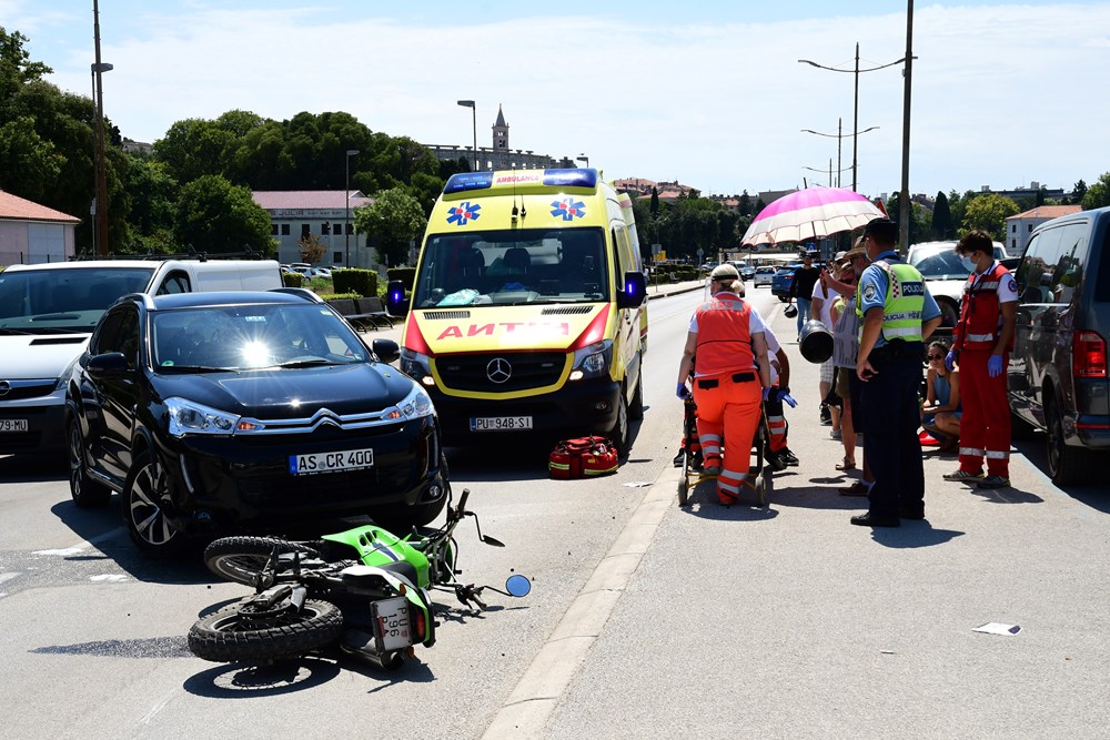 Na teren su došli djelatnici Hitne pomoći i policija, a vozač motocikla je zbog zadobivenih ozljeda vozilom Hitne pomoći prebačen u pulsku bolnicu.