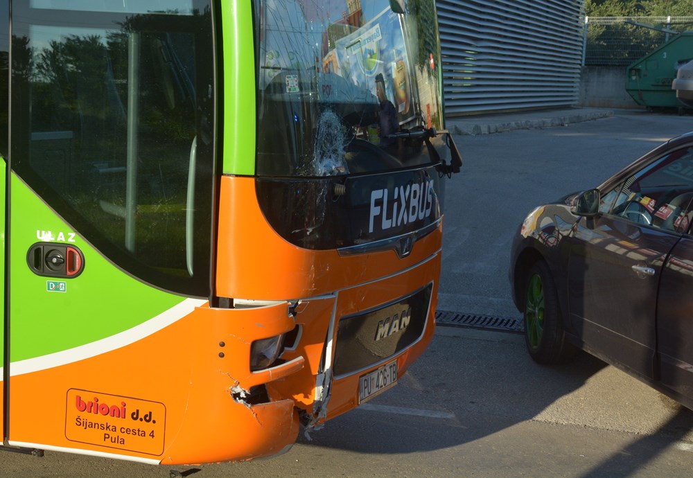 Prilikom pretjecanja autobus je udario u zadnji kraj automobila, koji se pak od siline udarca zaokrenuo. Očevidac dodaje kako je vozač autobusa pretjecao preko pune linije te tako sebe i druge sudionike prometa doveo u opasnost. Autobus je bio prazan prilikom nesreće, ali u automobilu je bilo pet putnika. Od voditelja očevida pulske Prometne policije doznali smo da su svi putnici kao i vozač automobila na sreću lakše ozljeđeni. (E. GARIBOVIĆ, snimio N. LAZAREVIĆ)