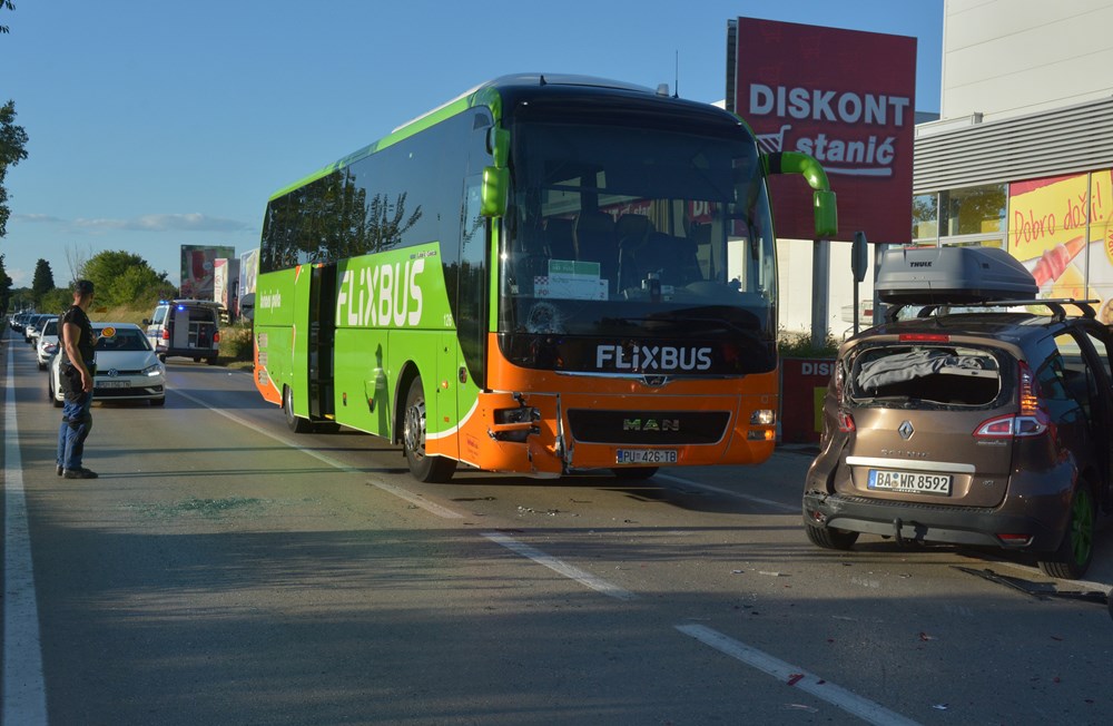 Po izjavama sudionika nesreće doznali smo da je vozač autobusa pokušao preteći automobil njemačkih registarskih oznaka, i to u trenutku kad je ovaj namjeravao skrenuti na parking obližnjeg diskonta Stanić.