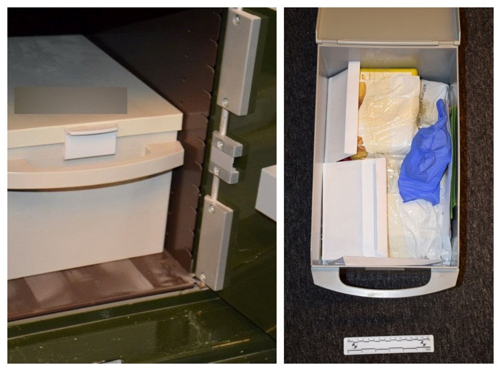Nadalje, u četvrtak 17. studenog 2022. godine, policijski službenici su sumnjajući da to nisu sva mjesta gdje skriva drogu, obavili i pretragu bankovnog sefa. Njihova sumnja potvrđena je s obzirom da je u sefu pronađeno 58 grama kokaina koji je bio pakiran u četiri paketa kao i novčani iznos od 87.400 eura za koji se sumnja da je pribavljen od preprodaje droge.