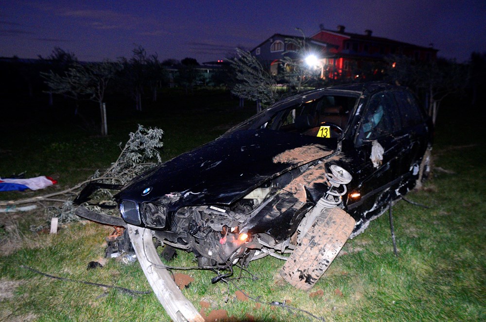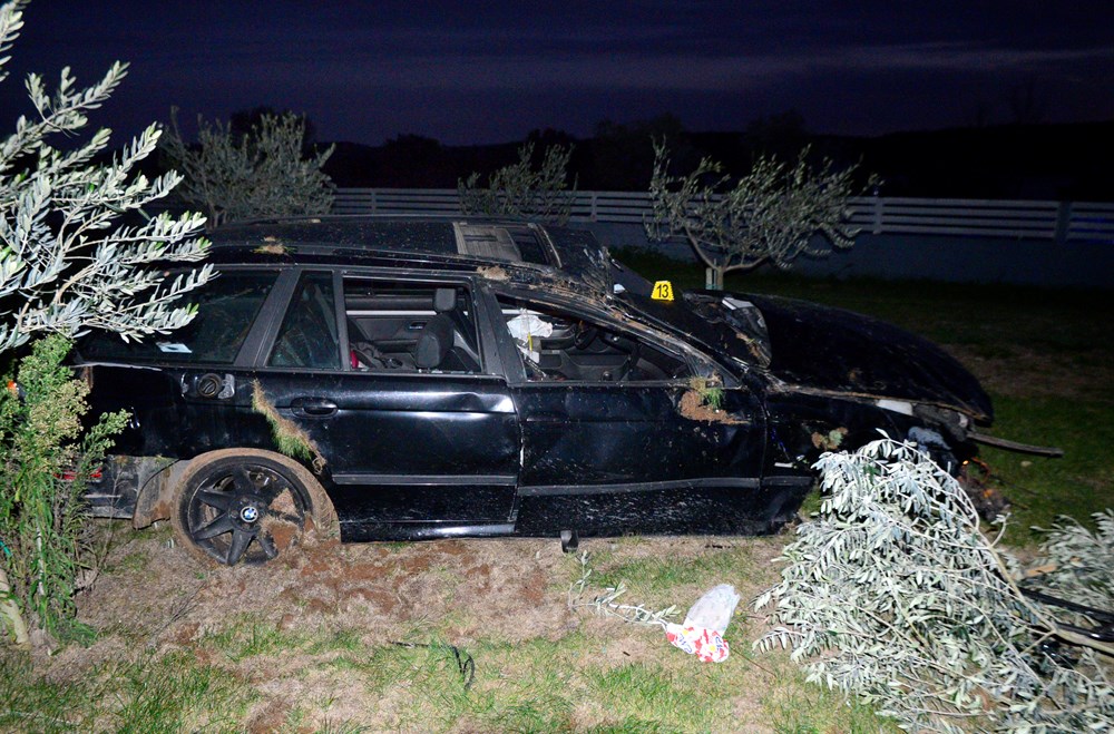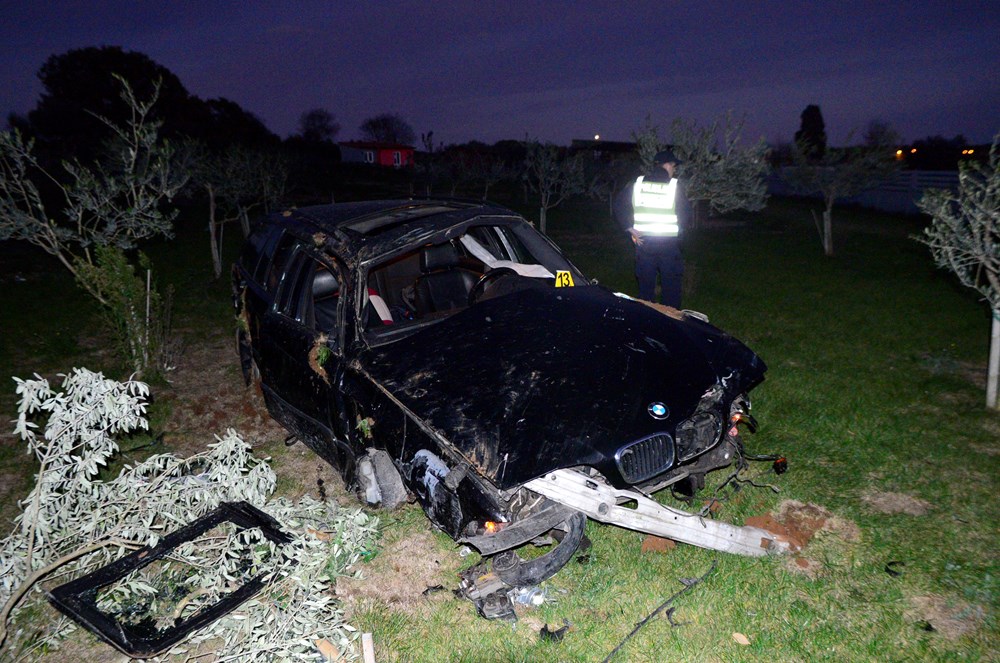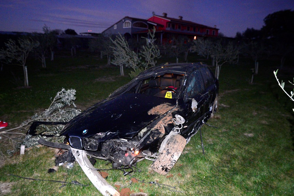 Auto, BMW karavan pulskih registarskih oznaka, u potpunosti je uništen, a u naletu auta stradala su četiri stabla maslina.