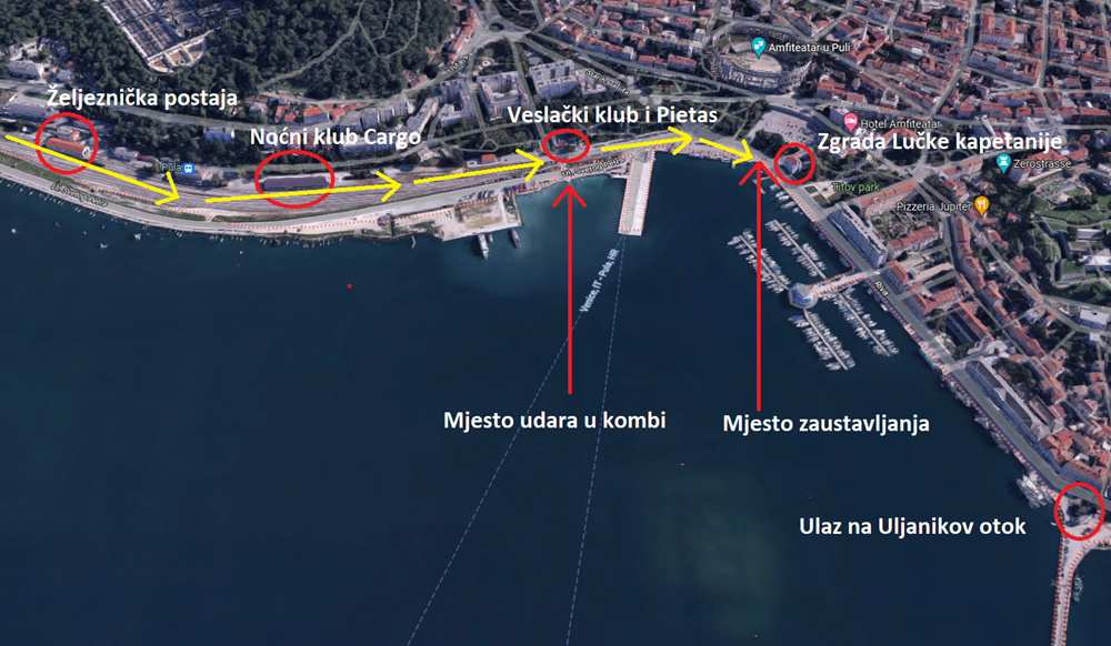 Da je izletio kod zgrade Lučke kapetanije prijetila bi opasnost da se odbije u obližnju benzinsku postaju za plovila na moru. Hipotetski je mogao nastaviti vožnju prema ulazu na Uljanikov otok.