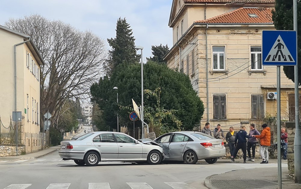 Sudar dva automobila dogodio se danas u 14.15 sati na Verudi u Puli.