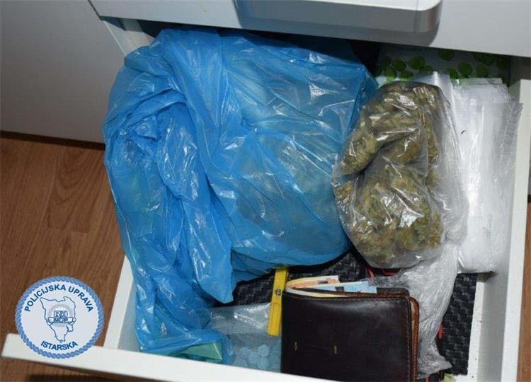 Pronađena su tri paketa s ukupno 736 grama marihuane, 54 tableta ectasya, digitalna vaga i više stotina eura za koje se sumnja da potječu od počinjenja kaznenog djela.