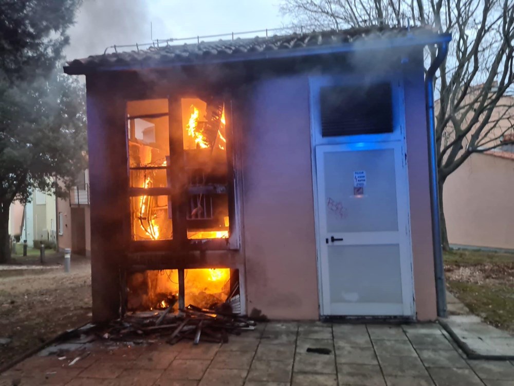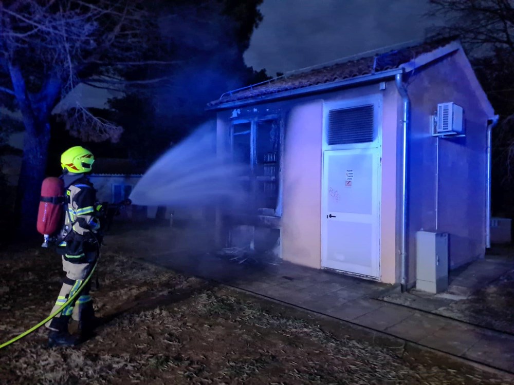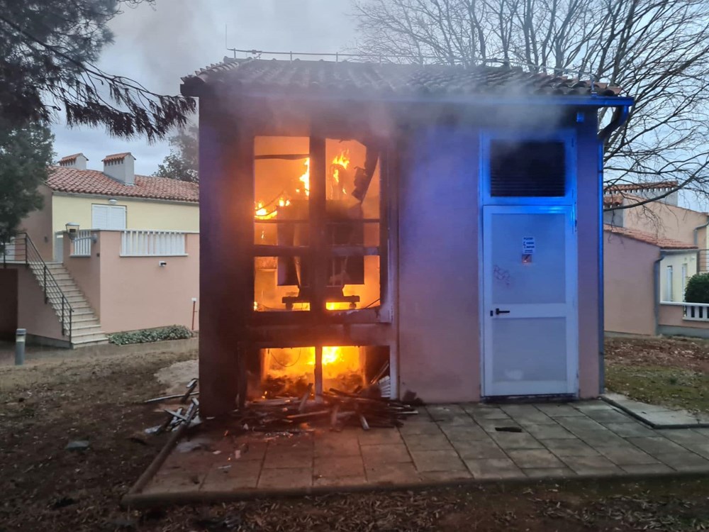 Rovinjski vatrogasci su danas u 17.17 sati zaprimili dojavu o požaru trafostanice u Amarinu. Brzom reakcijom, vatrogasci su na mjesto požara stigli u 17.22.