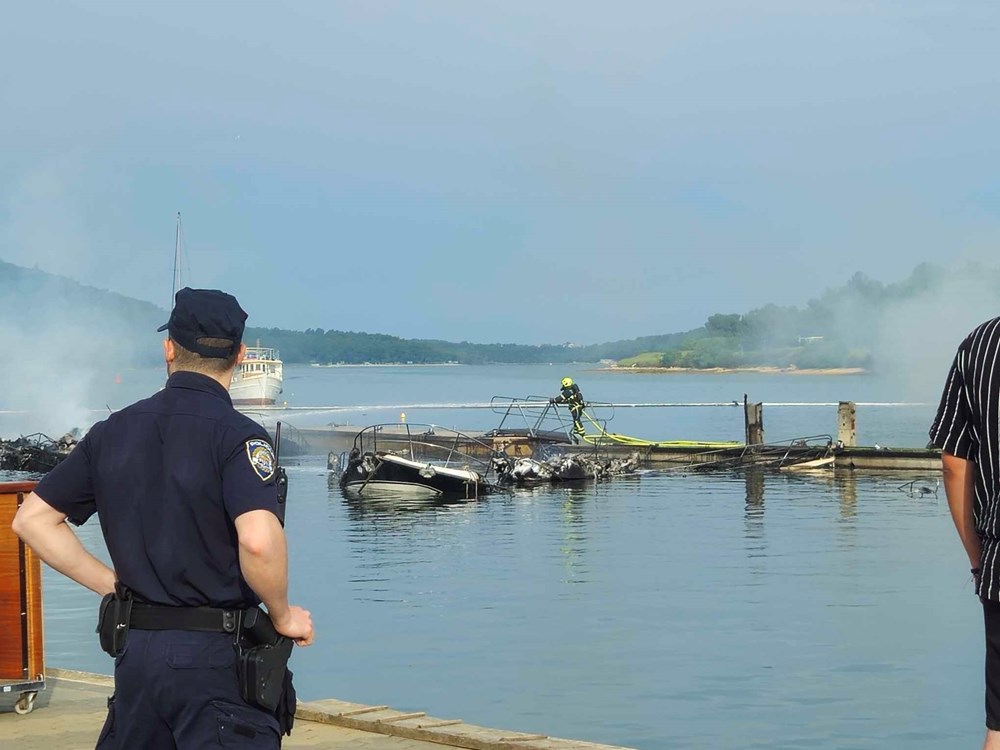 Policija je ogradila prostor marine koji je zahvatio požar, a na terenu smo oko 8 sati zatekli više vatrogasaca Javne vatrogasne postrojbe Pula, s tri vozila. Također, na Vižuli je bilo i sedam vatrogasaca Dobrovoljnog vatrogasnog društva Medulin, s četiri vozila. Kako saznajemo od vatrogasaca, požar je stavljen pod kontrolu oko 7 sati.