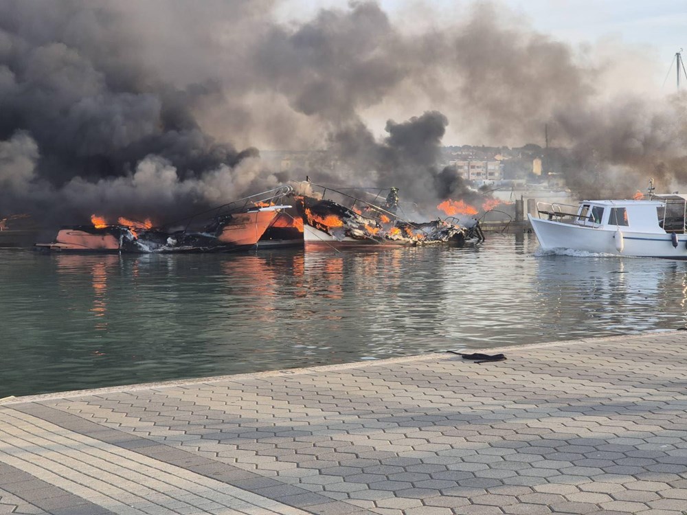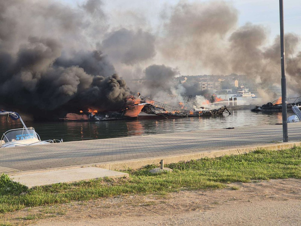 - Noćas je Medulin bio svjedok tužnog događaja - požara koji se dogodio u medulinskoj luci. Oko 3.55 sati, vatrogasci su primili dojavu o požaru u nautičkom dijelu naše luke, otvorenom za javni promet, a kojom upravlja Lučka uprava Pula. Reagirali su brzo i hrabro, s 15-ak ljudi i četiri vozila, te su odmah krenuli u odvajanje zahvaćenih plovila i gašenje požara.