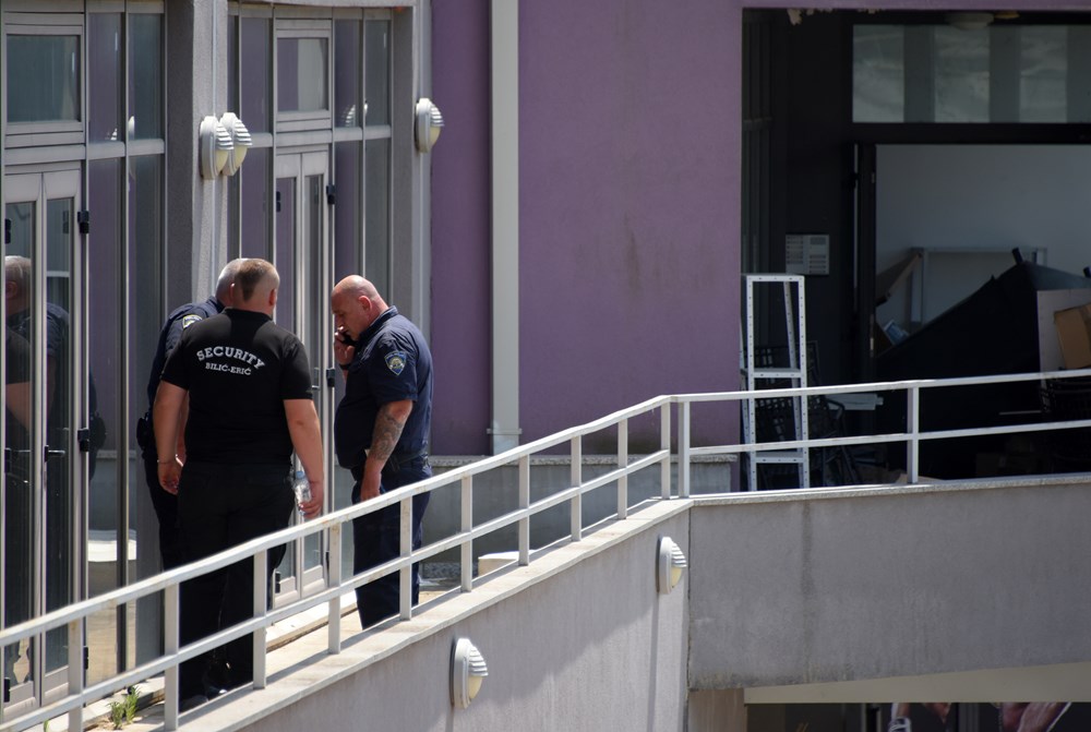 Zgrada je i dalje okružena policajcima, a pristup onemogućen.
