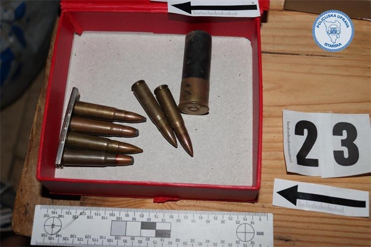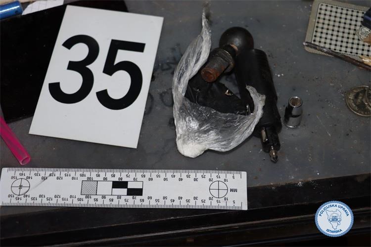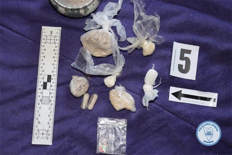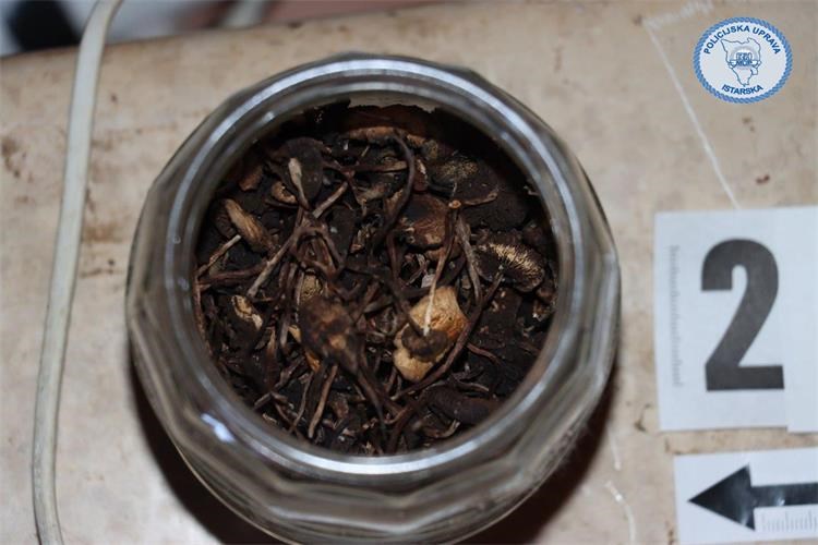 Policijski službenici su temeljem naloga nadležnog suda obavili pretragu doma i prostorija koje koristi osumnjičeni 38-godišnjak na području Žminja. Prilikom pretrage pronašli su 331 gram halucinogenih gljiva, 240.5 grama marihuane, 47.5 grama droge MDMA, 42.5 grama droge amfetamin, šest tableta ecstasy, tri sjemenke indijske konoplje, dvije PVC kapsule sa sadržajem kristalne materije i četiri listića LSD-a. Osim droge, pronađeni su i stroj za vakumiranje, digitalna precizna vaga, pet mobilnih uređaja te više tisuća eura za koje se sumnja da potječe od prodaje droge. Također je pronađeno 299 komada raznovrsnog streljiva, jedan protuavionski metak te razni predmeti i alati za koje se sumnja da potječu od kaznenih djela.