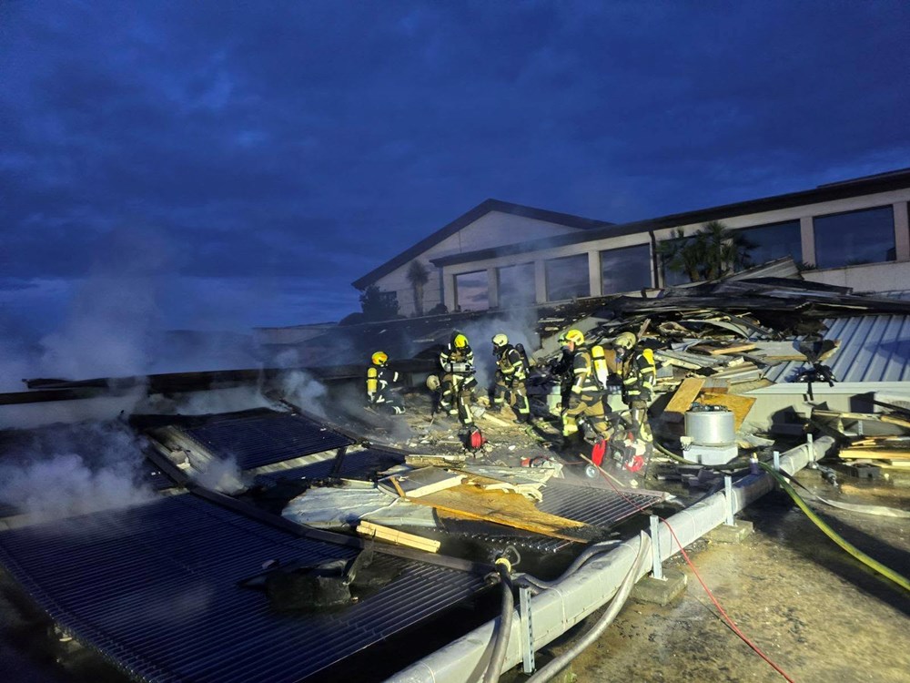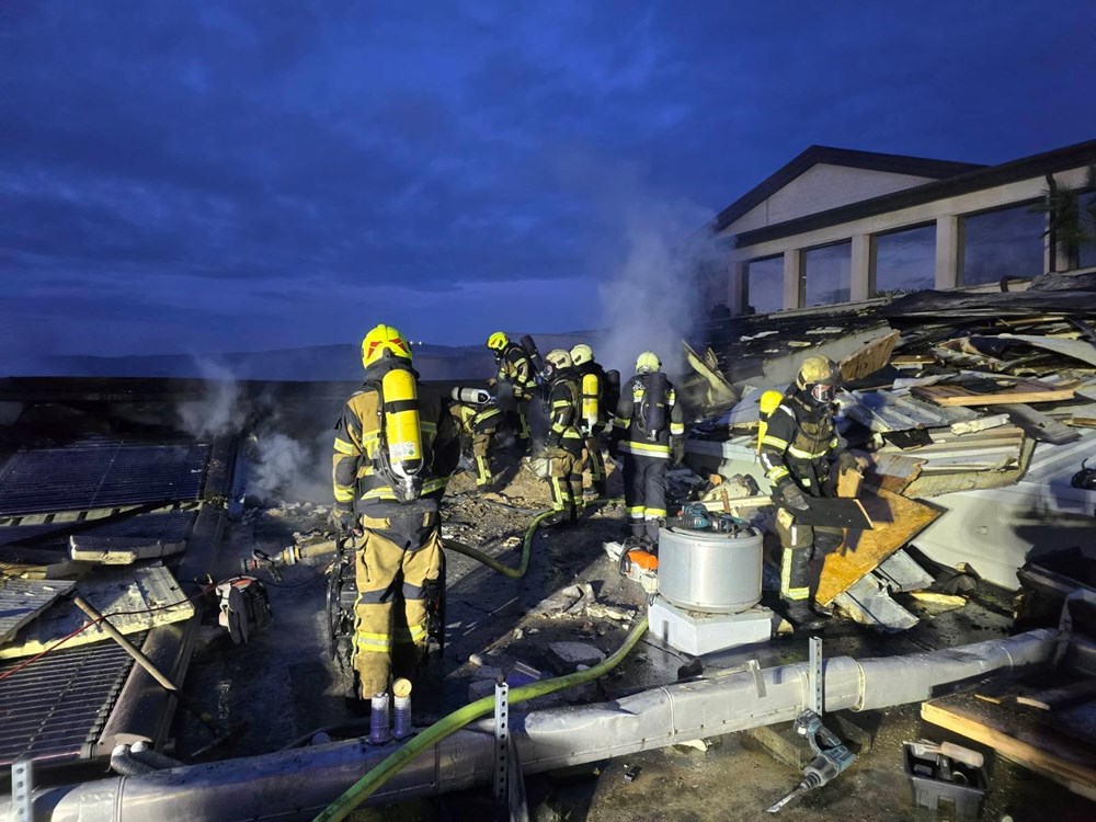 U objavi navode da je požar lokaliziran oko 18 sati, dok će dogašivanje i vatrogasna straža potrajati cijelu noć. Najveći problem predstavljala je složena krovna konstrukcija, sastavljena od sendvič-panela, solarnih elemenata i drvenih slojeva, ispod kojih je bura potiskivala vatru, dodatno otežavajući gašenje.