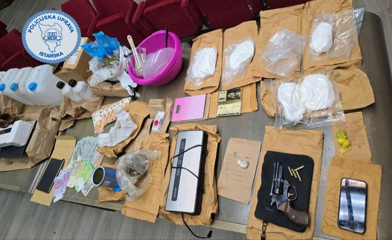 Temeljem naloga nadležnog suda, policijski službenici su 10. prosinca obavili pretrage stanova i vozila osumnjičenih na području Medulina te su pritom pronašli više pakiranja s ukupno 3.250,2 grama amfetamina, 3.645,5 grama marihuane te novac u vrijednosti više tisuća eura za koji se sumnja da potječe od prodaje droge. Policijski službenici pronašli su i mobitele, revolver marke Magnum cal. 357, više vrsta tekućih materija karakterističnih za proizvodnju amfetamina, rukavice, masku s filterima, digitalne vage, uređaje za vakumiranje i drugi pribor za proizvodnju i pakiranje droge, a pronađena je i bilježnica s evidencijom dugovanja.