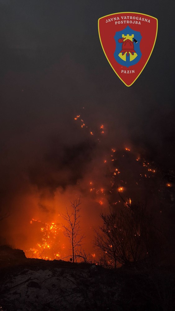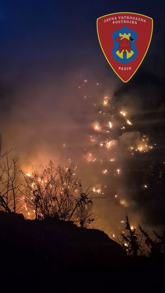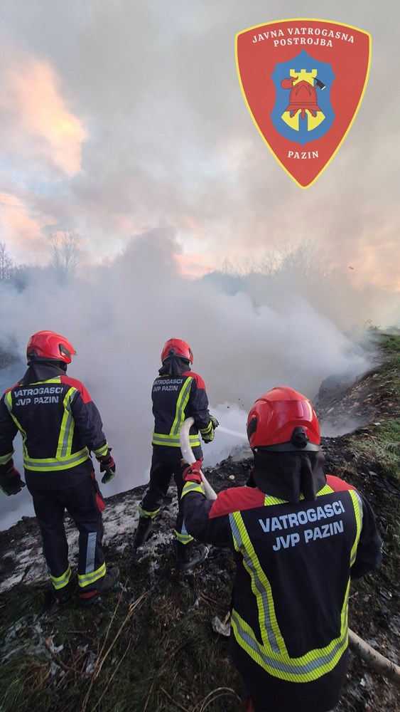 Dojava o požaru zaprimljena je u 18.22 sati, nakon čega su na teren upućena dva vatrogasna vozila i četiri vatrogasca Javne vatrogasne postrojbe Pazin. Zbog blizine granice operativnog područja, u intervenciju su uključeni i vatrogasci DVD-a Pićan.