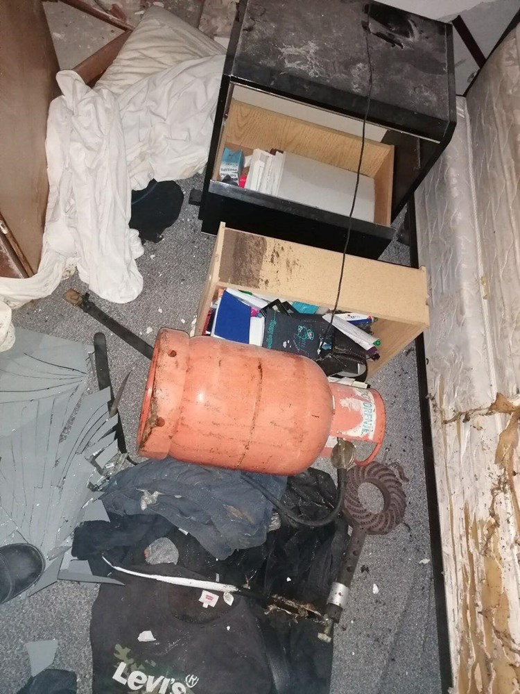 Kako se može vidjeti po fotografijama, od siline eksplozije popucali su zidovi prostorije.
