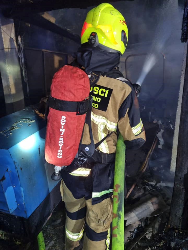 Dojava o požaru je zaprimljena u petak u 22.54 sati, a na teren su izašli vatrogasci Javne vatrogasne postrojbe Rovinj.