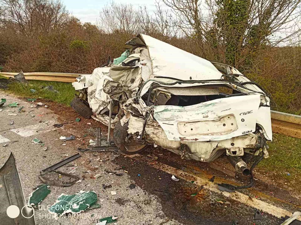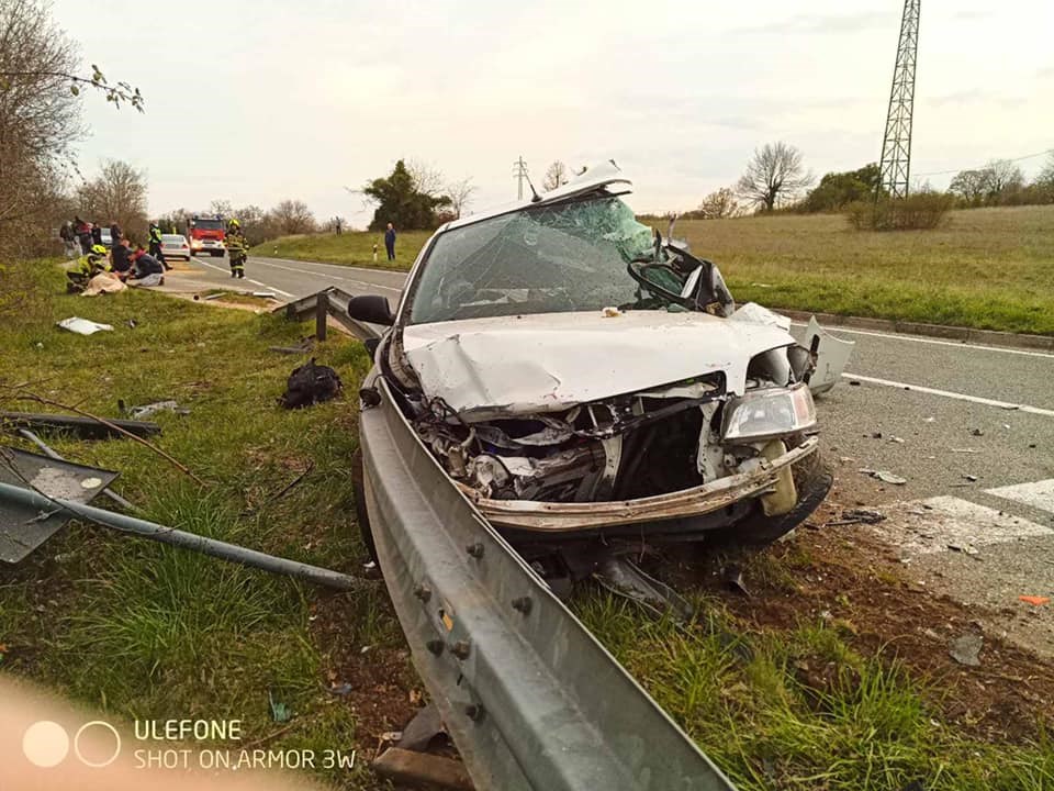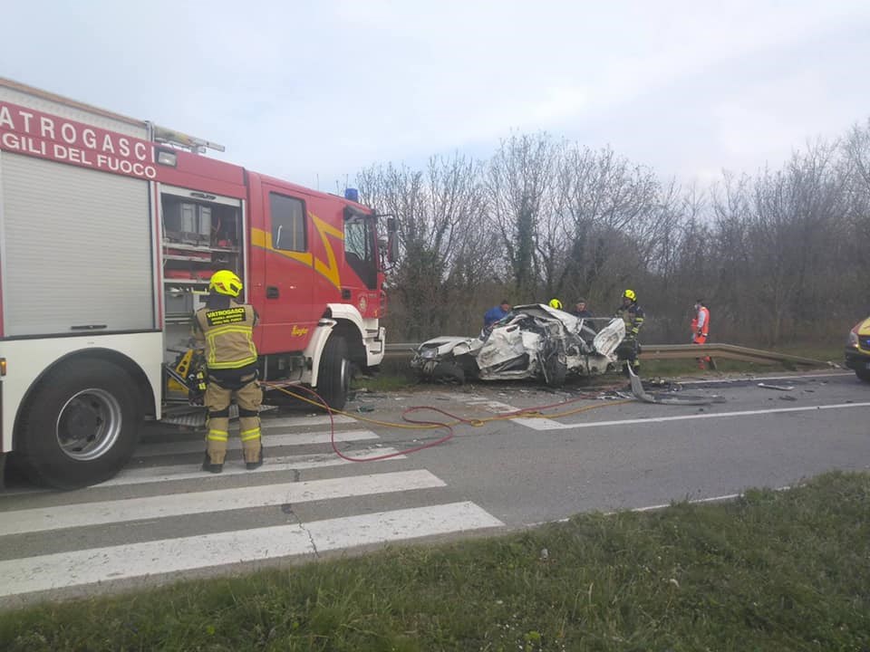 Policija je dojavu zaprimila oko 17.30 sati, a na intervenciju su uz policiju izašla i dva vozila Hitne medicinske pomoći te pet vatrogasaca s tri vozila JVP Rovinja i DVD-a Žminj, koji su, kako piše 24 sata, iz smrskanog auta dva mladića i psa.