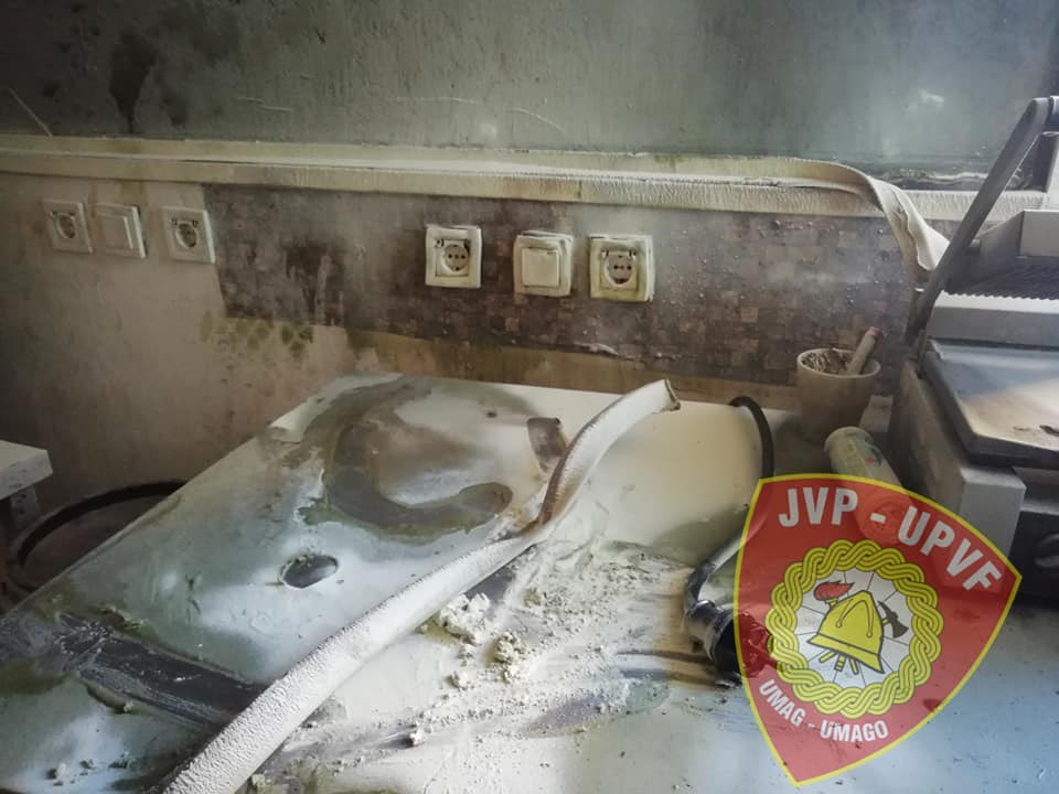 Požar je izazvala friteza, a vatrogasci su ubrzo plamen ugasili te nitko nije ozlijeđen, već je zabilježena samo materijalna šteta.