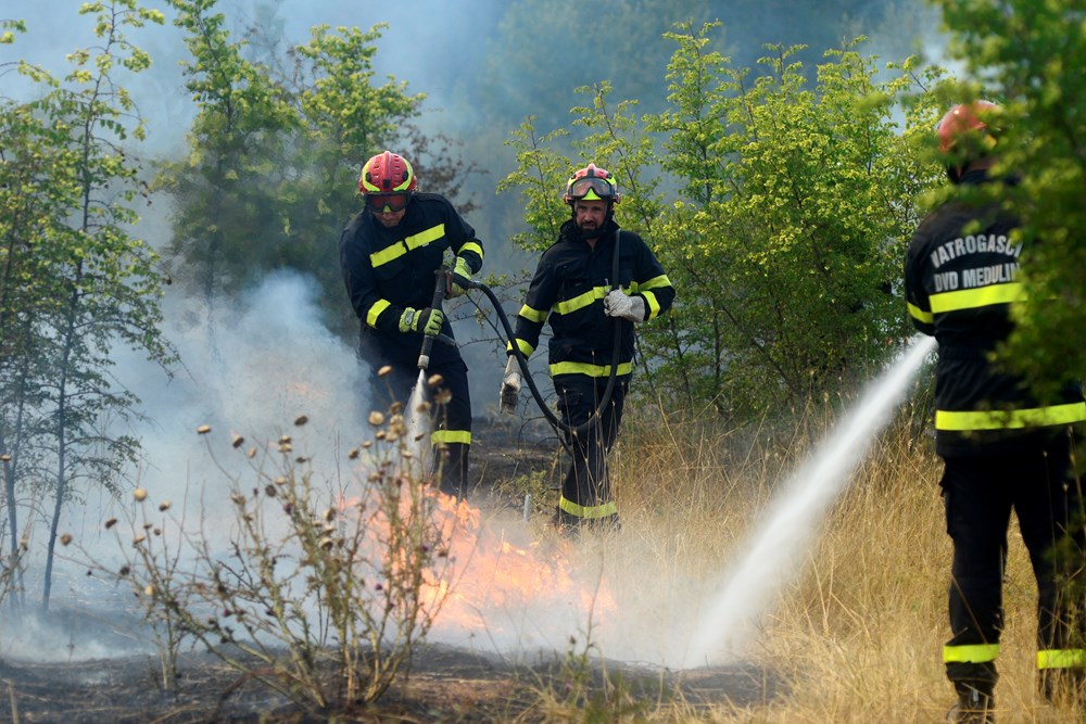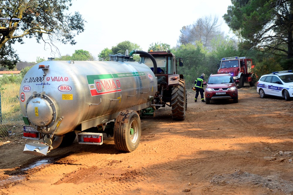 Odmah po dojavi, na teren su krenule sve raspoložive snage Javne vatrogasne postrojbe Pula - 26 vatrogasaca s 11 vozila, a u pomoć su priskočili i vatrogasci dobrovoljnih vatrogasnih društava Ližnjan i Medulin.
