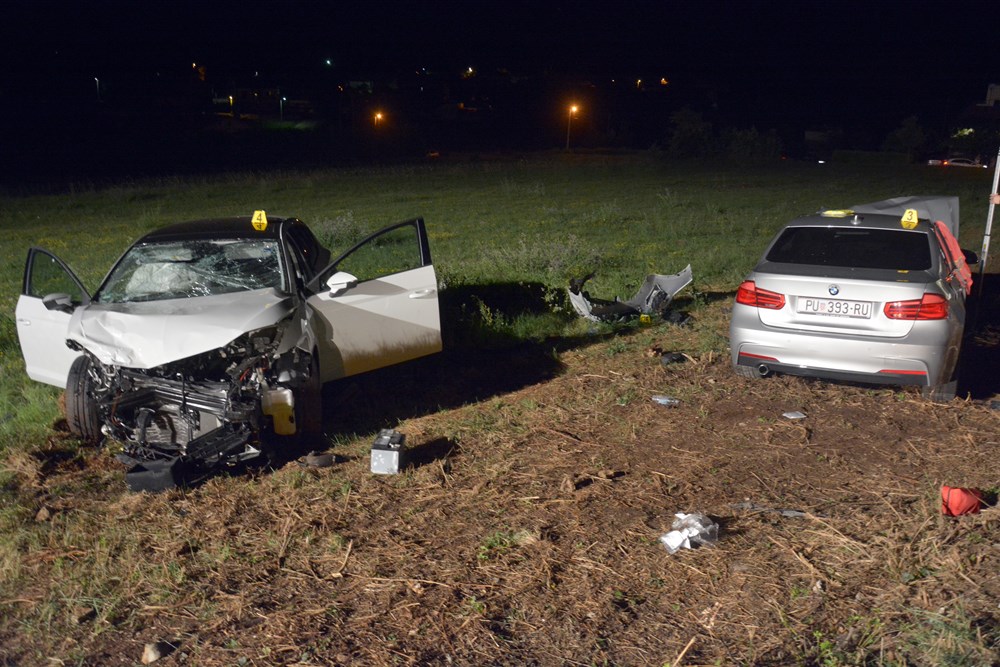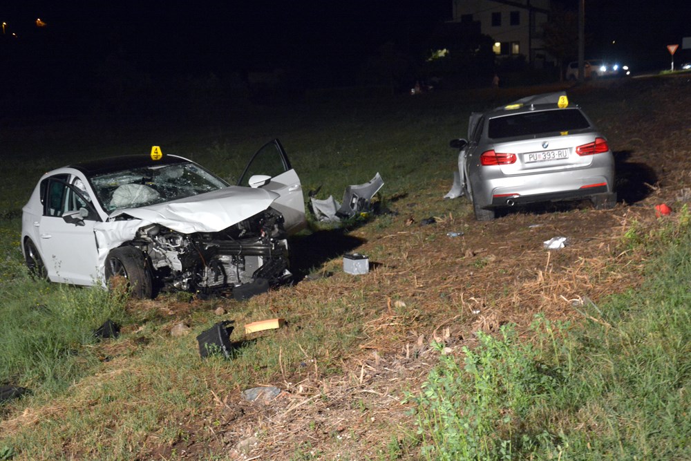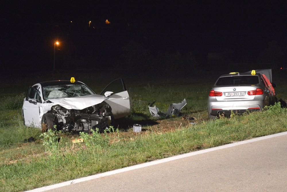 Do nesreće je došlo kada je vozač automobila Seat Leon dolazio iz pravca Pule prema Manjadvorcima i namjeravao skrenuti u lijevo bez da je propustio vozila iz suprotnog smjera koja imaju prednost prolaska. U tom je trenutku iz suprotnog smjera, iz smjera Barbana, naišao BMW pulskih oznaka koji je jednako kao i Seat pokušao izbjeći sudar tako da su se oba vozila skrenula u lijevo na travnatu površinu. Vozači su uspjeli izbjeći sudar na kolniku, no nisu ga izbjegli na travi gdje su se ipak sudarili. Očito je došlo do rotiranja vozila uslijed čega su se uspjeli sudariti. Tri ozlijeđene osobe nalazile su se u BMW-u, dok je vozač Seat Leona prošao tek sa ogrebotinama. Policija je u 21.40 sati zatvorila cestu Prodol – Manjadvorci za sav promet radi obavljanja očevida, a upućeni su na mjesto događaja i pulski vatrogasci i Hitna pomoć. Promet se odvijao okolnim pravcima prema Puli i prema Barbanu. (M. S.)