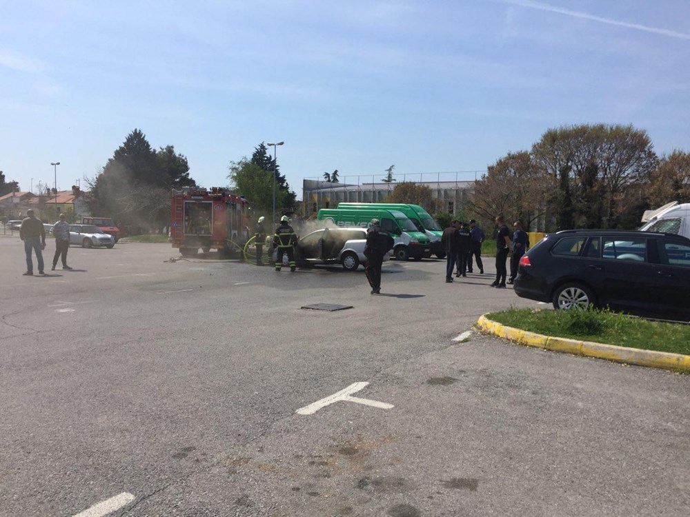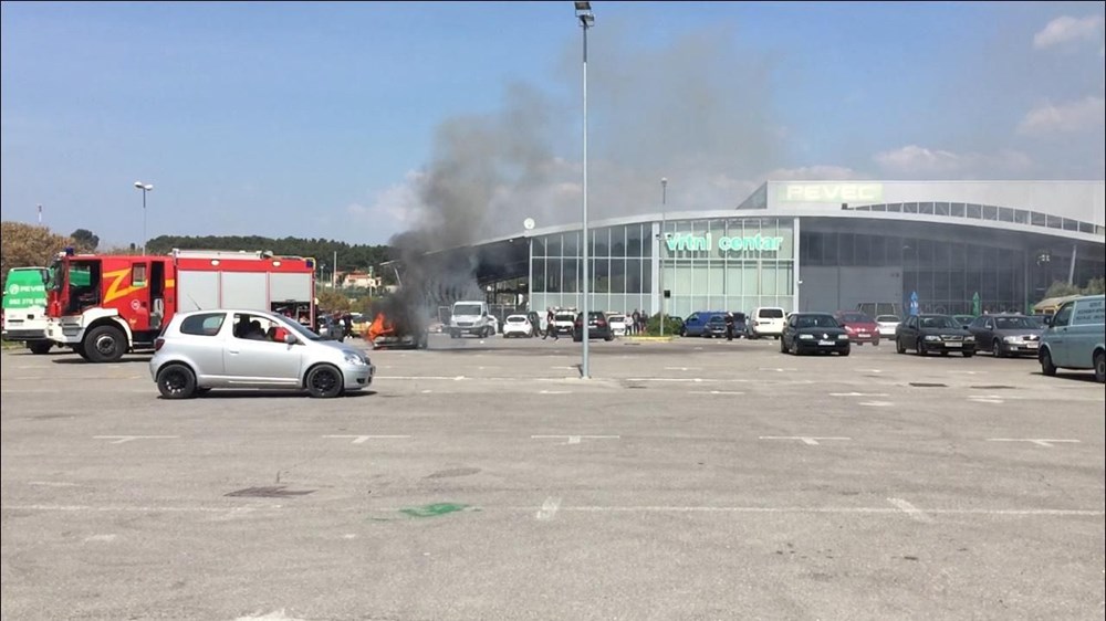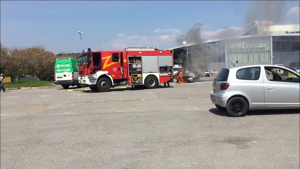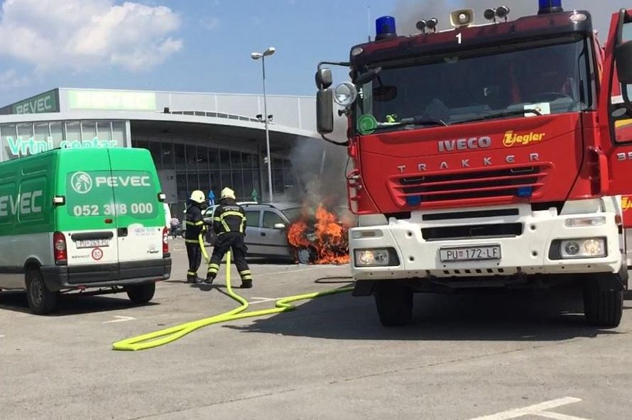 Danas oko 13 sati na parkiralištu pulskog trgovačkog centra Pevec zapalio se automobil.