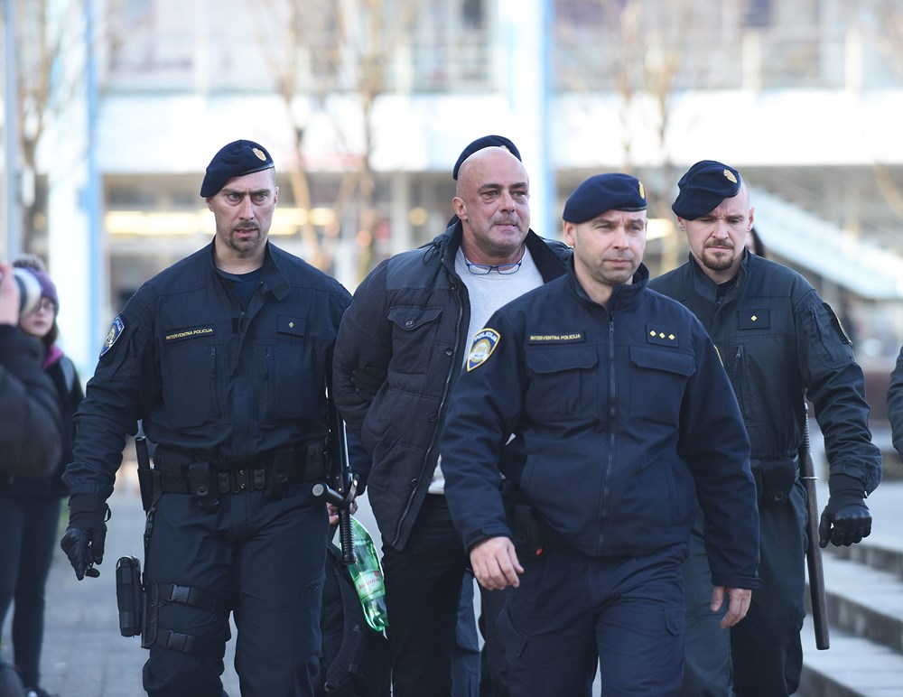 Po izlasku iz "marice", a pratilo ga je pet interventnih policajaca, galamio je na novinare: