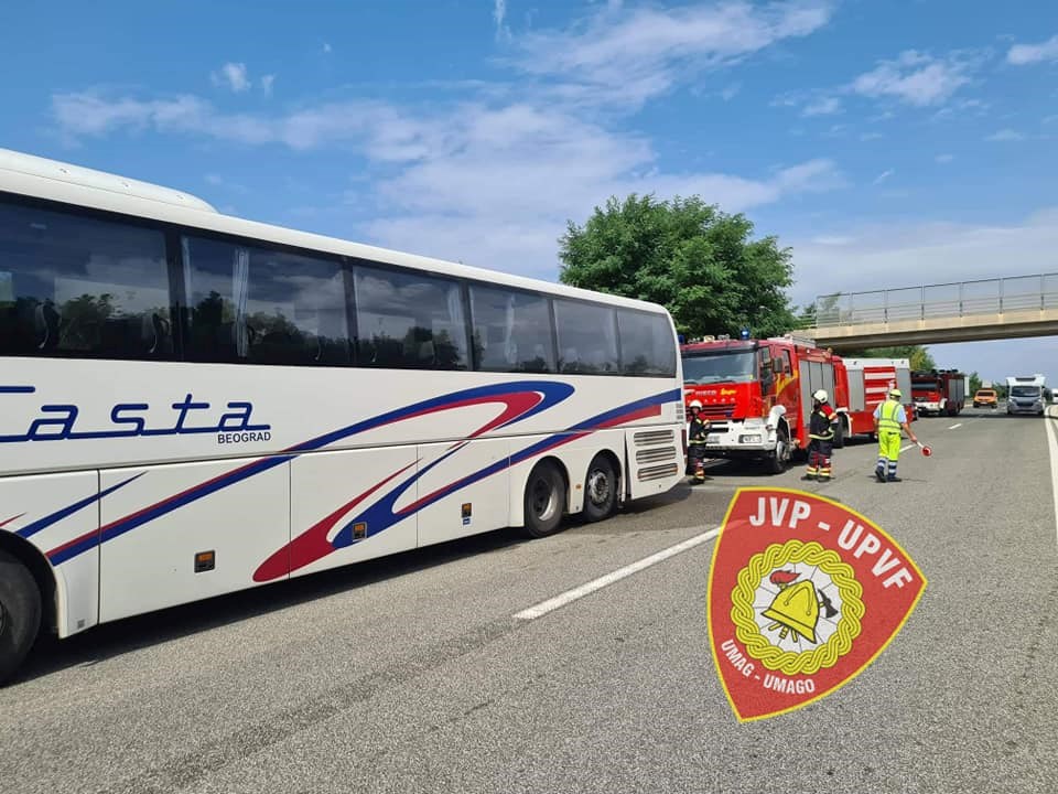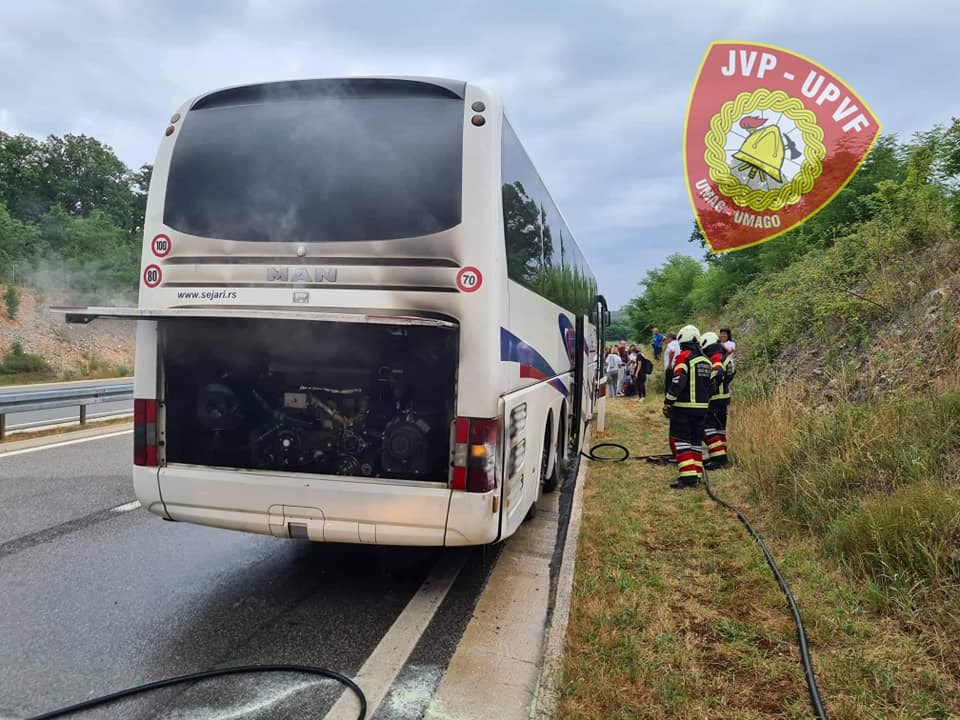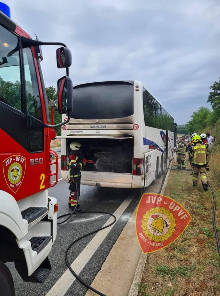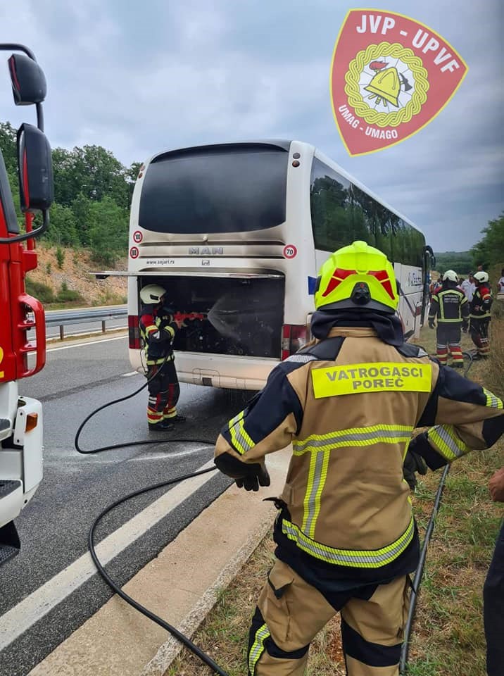Jutros se na Istarskom ipsilonu kod čvora Višnjan oko 10 sati zapalio autobus koji je prevozio putnike iz Poreča za Beograd.