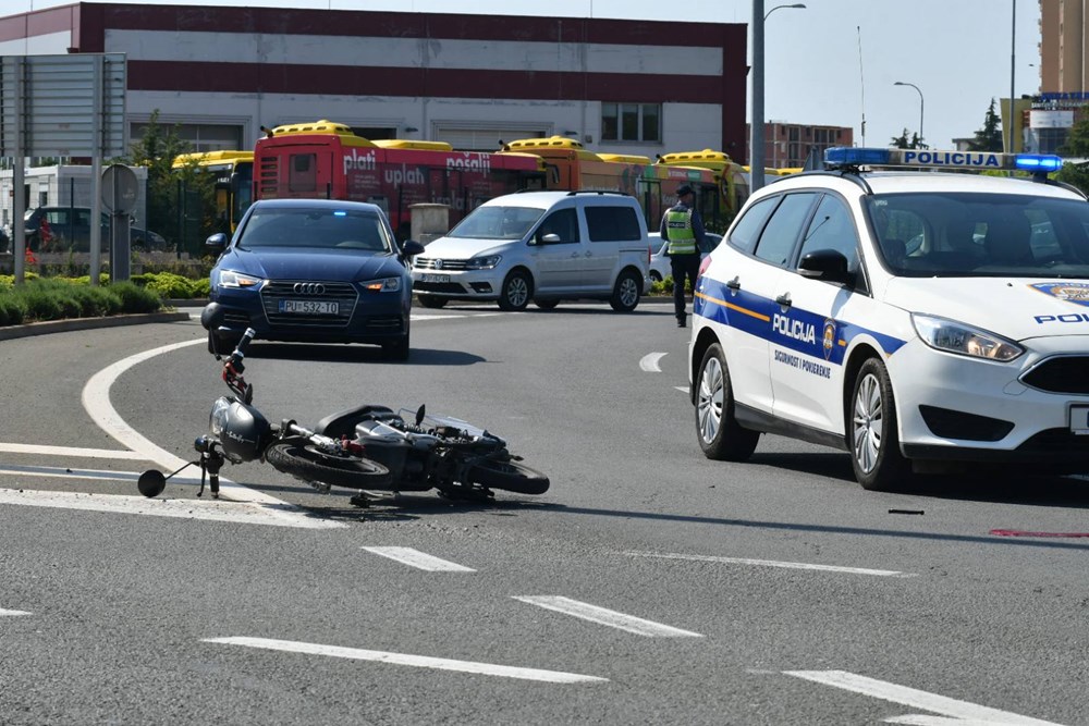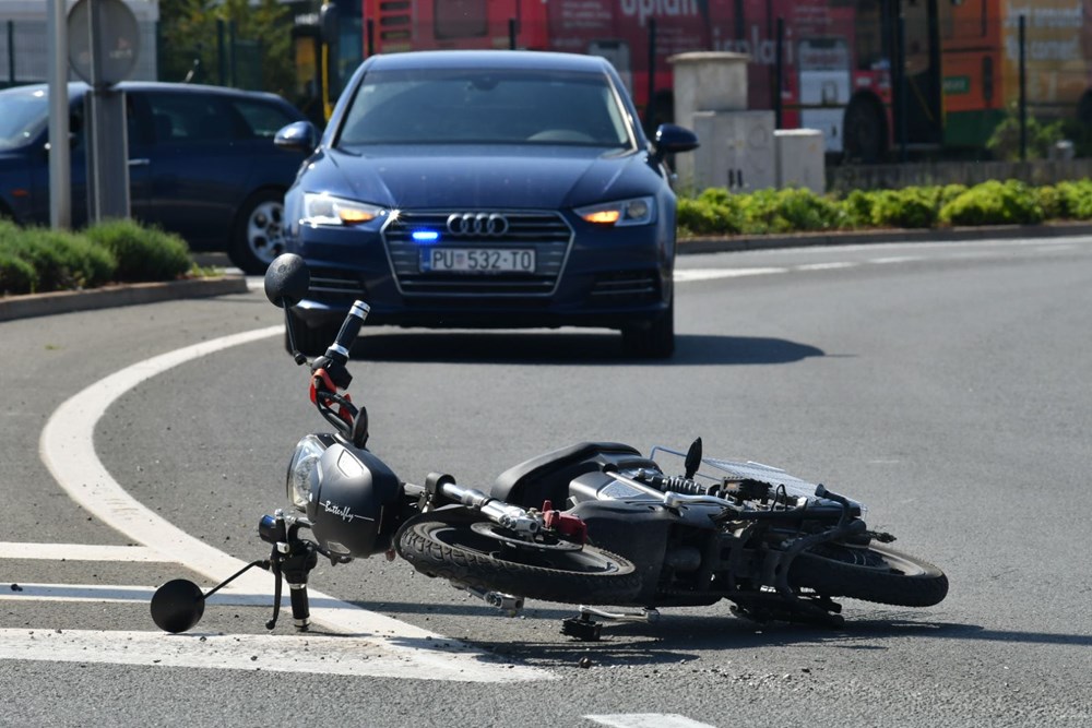 Vozač motocikla, odnosno električnog bicikla, ozlijeđen je u prometnoj nesreći koja se dogodila jutros oko 10 sati na velikom rotoru u Šijani u Puli.