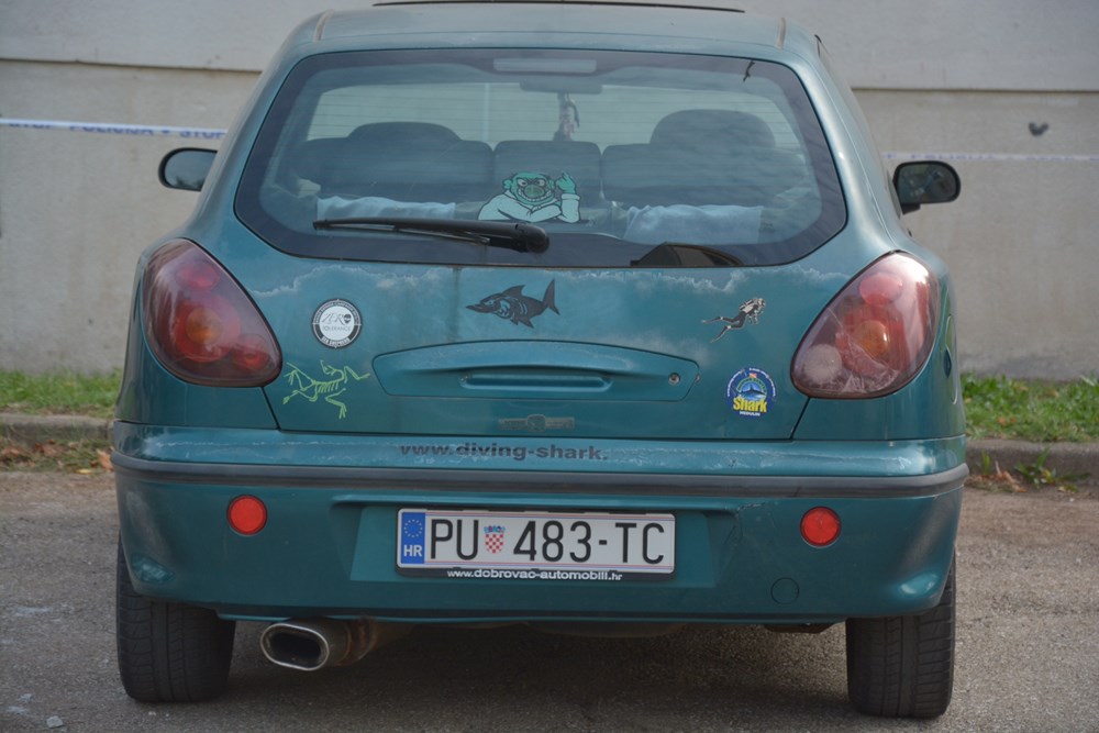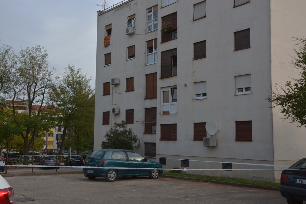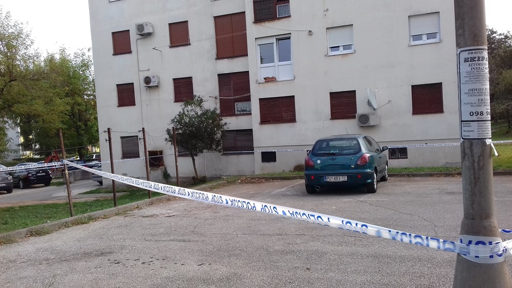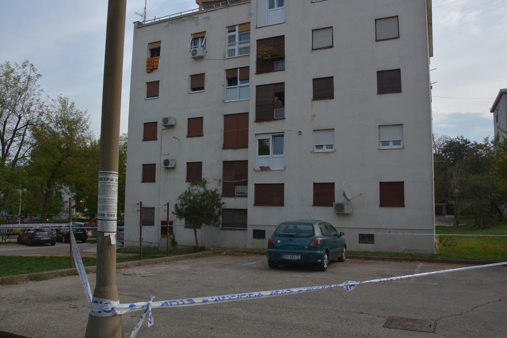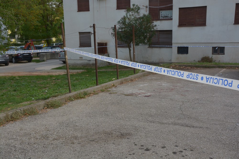 Na poprištu krvavog obračuna danas je ujutro policijskim trakama bio ograđen dio parkirališta na kojemu se nalazi automobil u vlasništvu, kako su kazali susjedi, 40-godišnjeg G. R., stanara za kojega nisu imali puno lijepih riječi. Na tlu, nedaleko od automobila, o teškom u okršaju svjedočili obilni tragovi krvi. (Marica KOŠTA, snimio Neven LAZAREVIĆ)