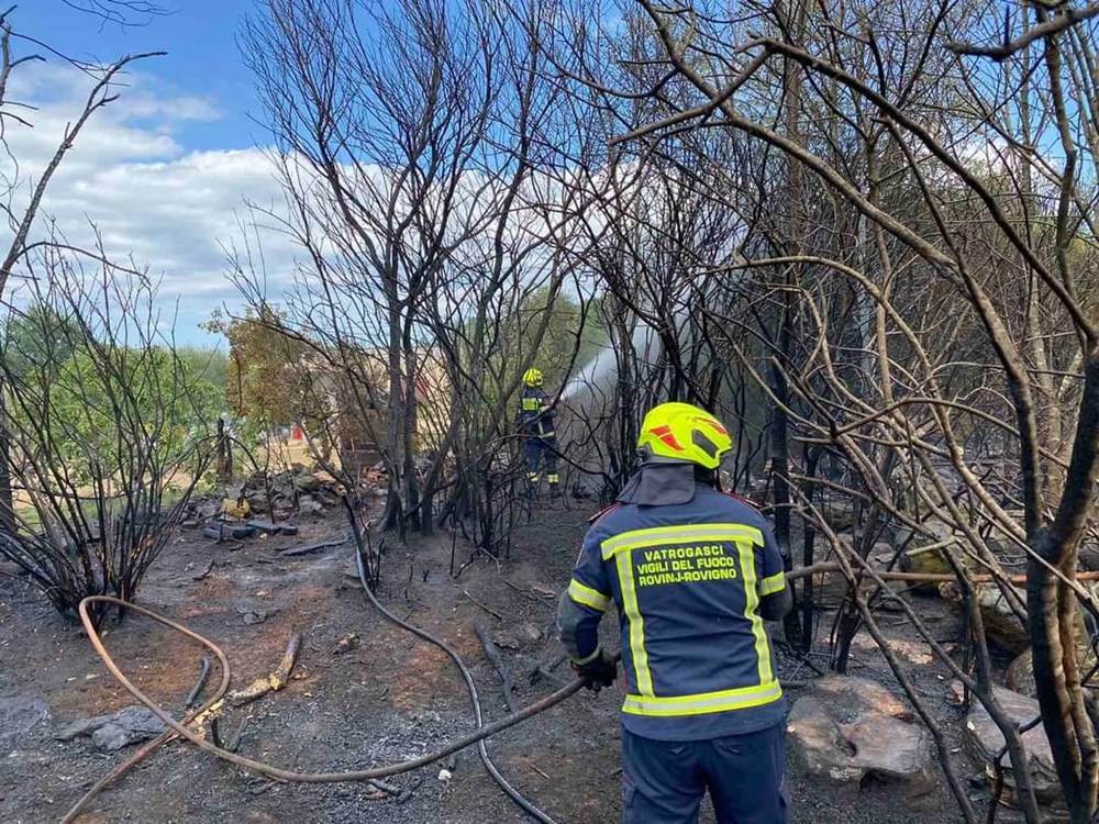 Rovinjski su vatrogasci danas u 12.49 alarmirani o požaru u predjelu Madonna Di Campo nadomak Rovinja.