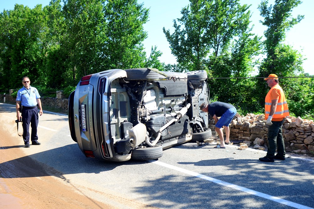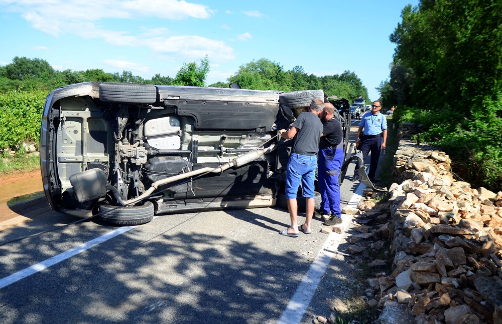 Na cesti Vodnjan - Bale, nešto prije 16 sati, došlo je do prometne nesreće u kojoj je, prema prvim prvim informacijama, sudjelovalo jedno vozilo koje se prevrnulo na bočnu stranu.