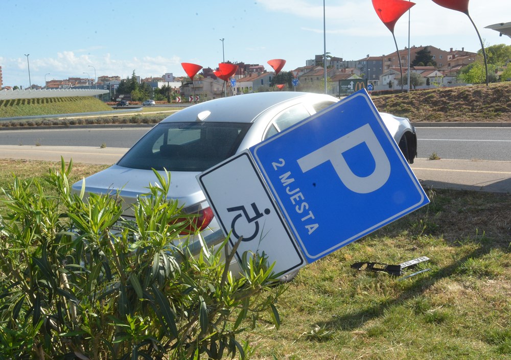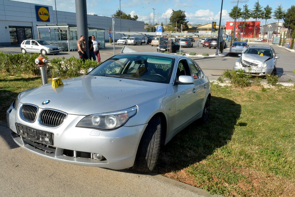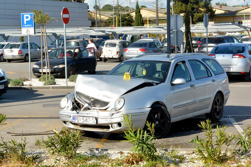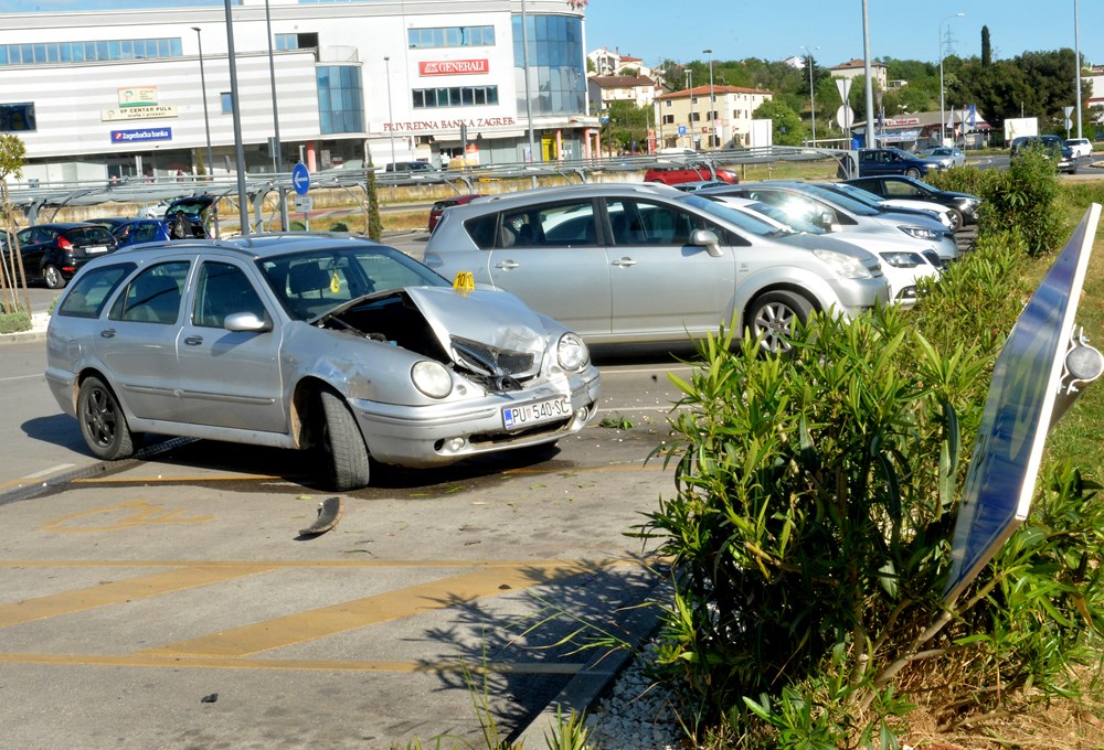 Nakon kontakta vozačica koja se nepropisno prestrojavala, izletjela je izvan kolnika te je udarila u znak i automobil na parkiralištu trgovačkog centra Lidl.