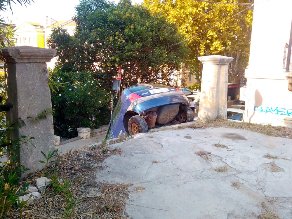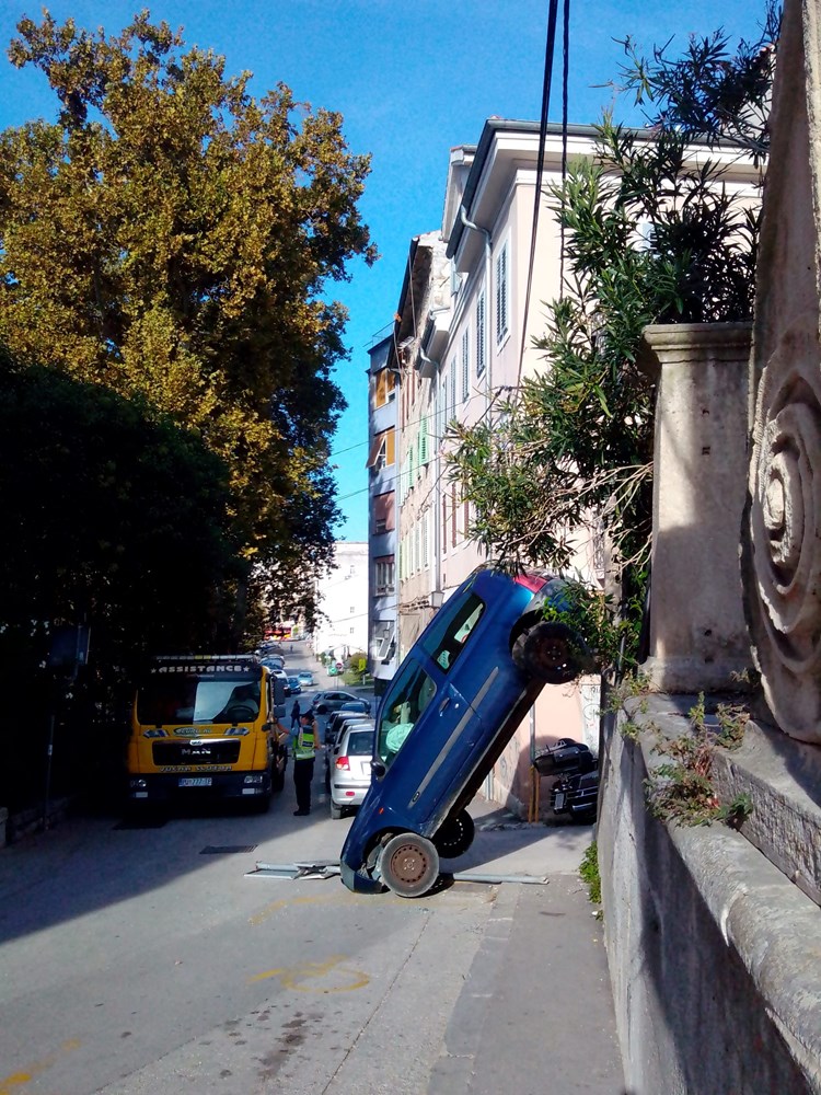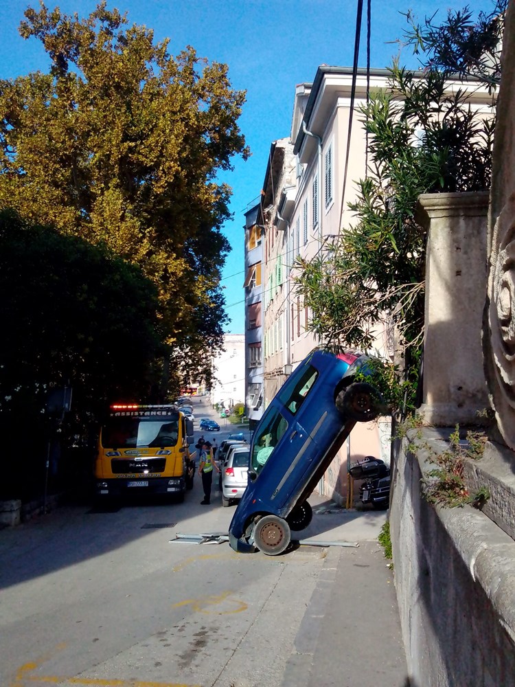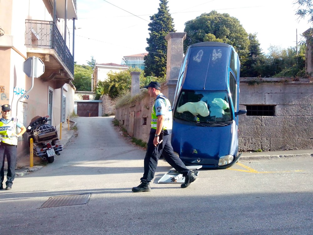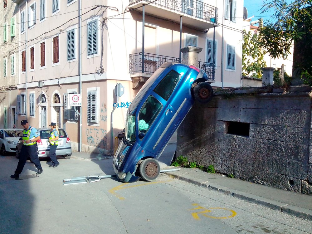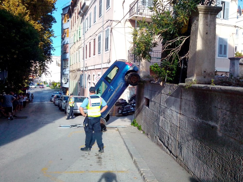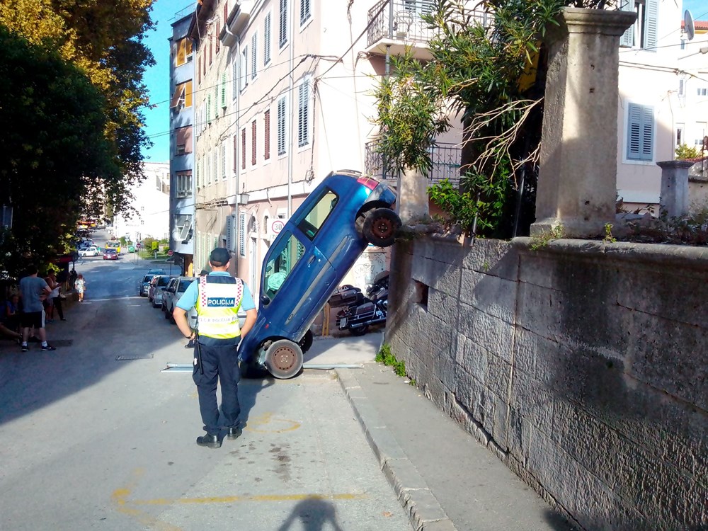 Naime, osobni automobil je bio parkiran u ulici Castropola, na parkingu u blizini pizzerije Jupiter, a iz zasad nepoznatih razloga, automobil je sletio s visine od dva metra, s parkirališta na cestu.
