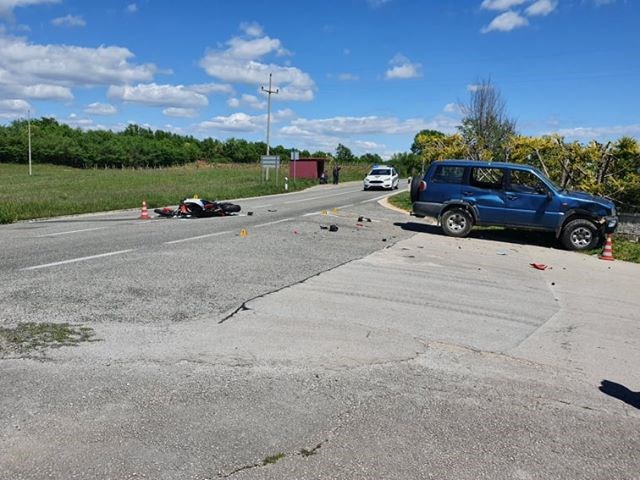 Motociklist, koji je uslijed sudara pao na kolnik, prevezen je u riječki KBC, a prema dostupnim informacijama, nije u životnoj opasnosti.