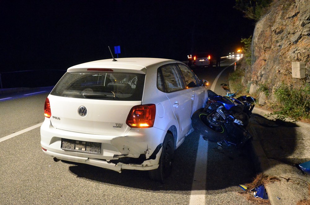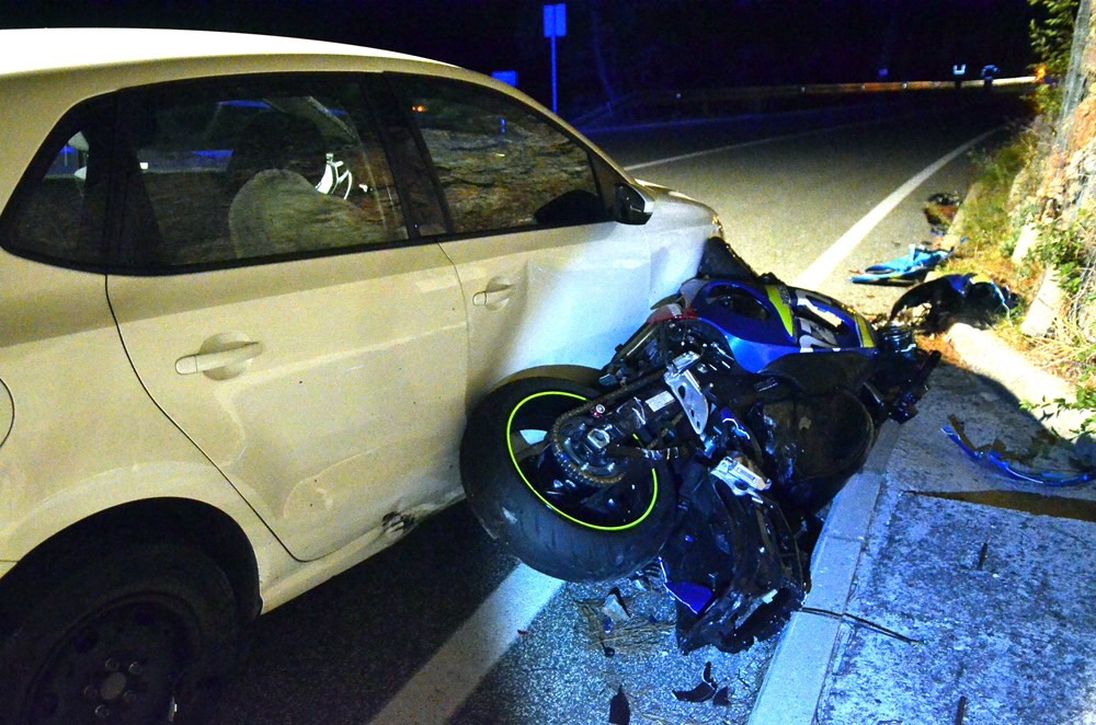 Motociklista se kretao iz smjera Rijeke u smjeru Plomina i naletio je na automobil koji se kretao u istom smjeru, te je prvo udario u stijene, a potom u zadnji desni dio automobila VW Polo. Motocikl Suzuki je ostao zaglavljen između automobila i stijena. Kazaljka brzine zaustavila se na oznaci 80 kilometara na sat. Kako doznajemo, u nesreći je smrtno stradao motociklist, 27-godišnji M. K. iz Labina, kojem ni zaštitna kaciga nije pomogla.