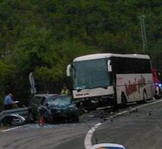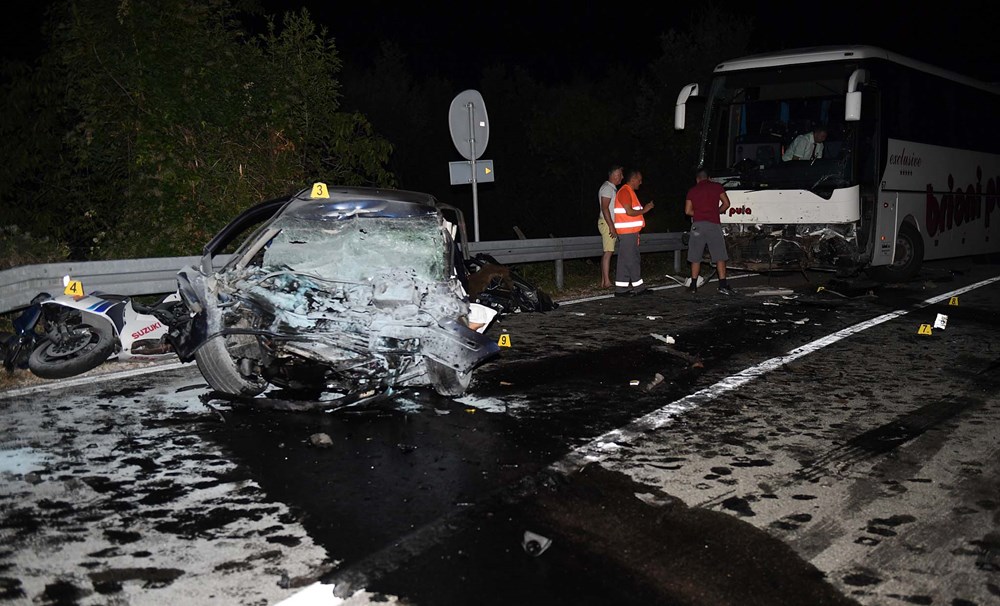 Promet je zaustavljen, dok je zamjenica općinske državne odvjetnice Tamara Torić zajedno s djelatnicima prometne policije Opatija rukovodila očevidom. U jezivom srazu osobnog automobila i autobusa, vozač autobusa i putnici nisu ozlijeđeni. (S. KLEVA)