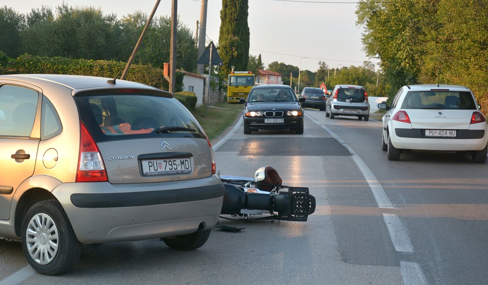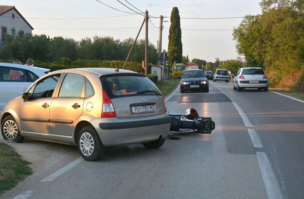 U prometnoj nesreći koja se danas oko 18.15 sati dogodila u naselju Loborika, na cesti Pula - Marčana, ozlijeđen je vozač motocikla. Motocikl talijanskih registarskih oznaka udario je u automobil Citroën C3 pulskih oznaka. Iako do zaključenja lista nismo dobili točne podatke o nesreći, po onome što je bilo vidljivo na mjestu nesreće za pretpostaviti je da je do sudara došlo nakon što je vozač automobila započeo skretati ulijevo, i najvjerojatnije oduzeo prednost motociklu koji je se kretao u smjeru Pule. Više informacija bit će poznato sutra. (S. P.)