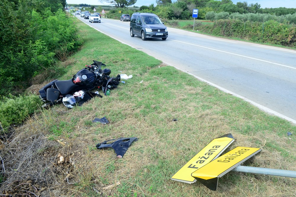 Nakon udara motocikl je udario u znak na suprotnoj strani kolnika i klizeći nastavio još nekoliko metara gdje se zaustavio na travnatoj površini. Na mjestu događaja, dok je očevid još bio u tijeku, saznali smo da je vozač VW pasata njemački državljanin i da je s njim u automobilu bila još jedna muška osoba.