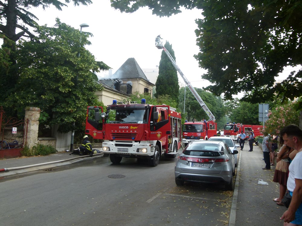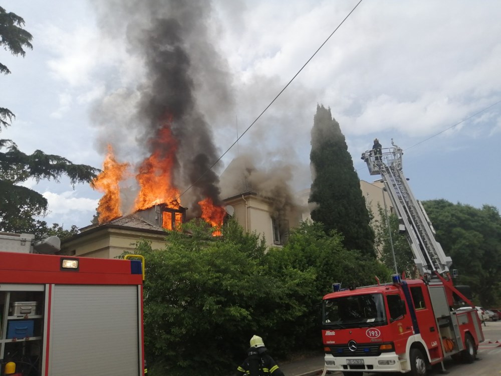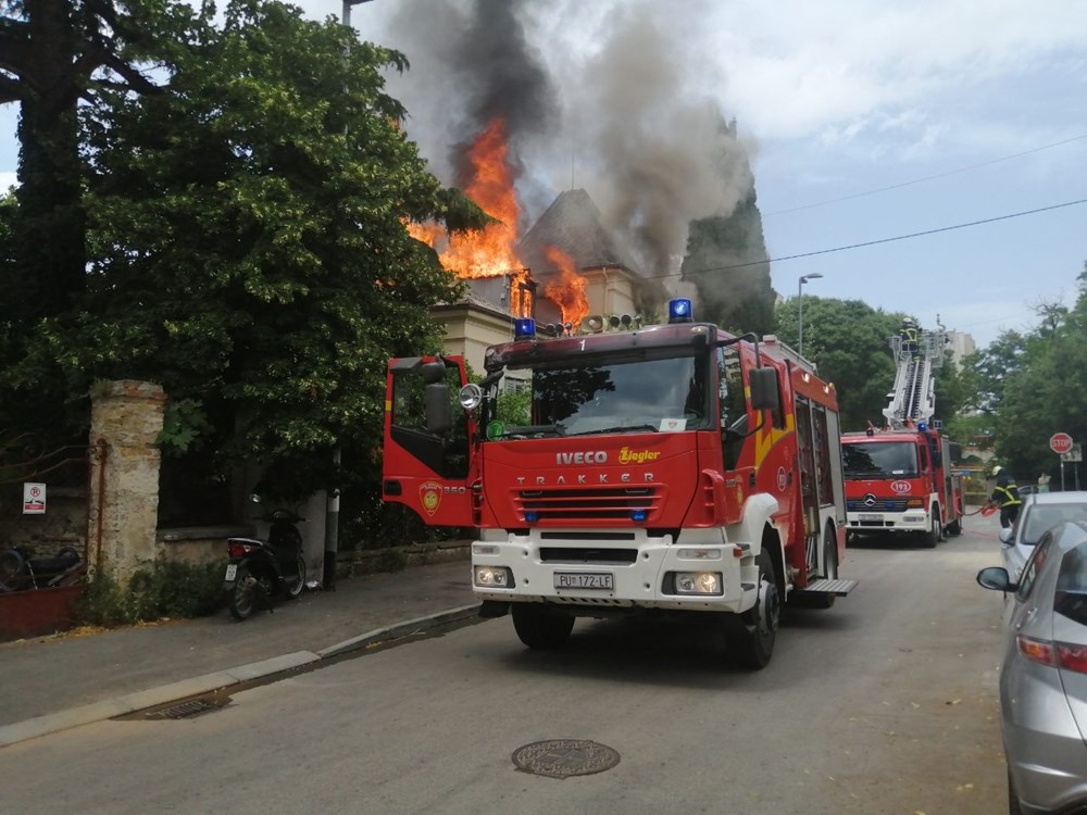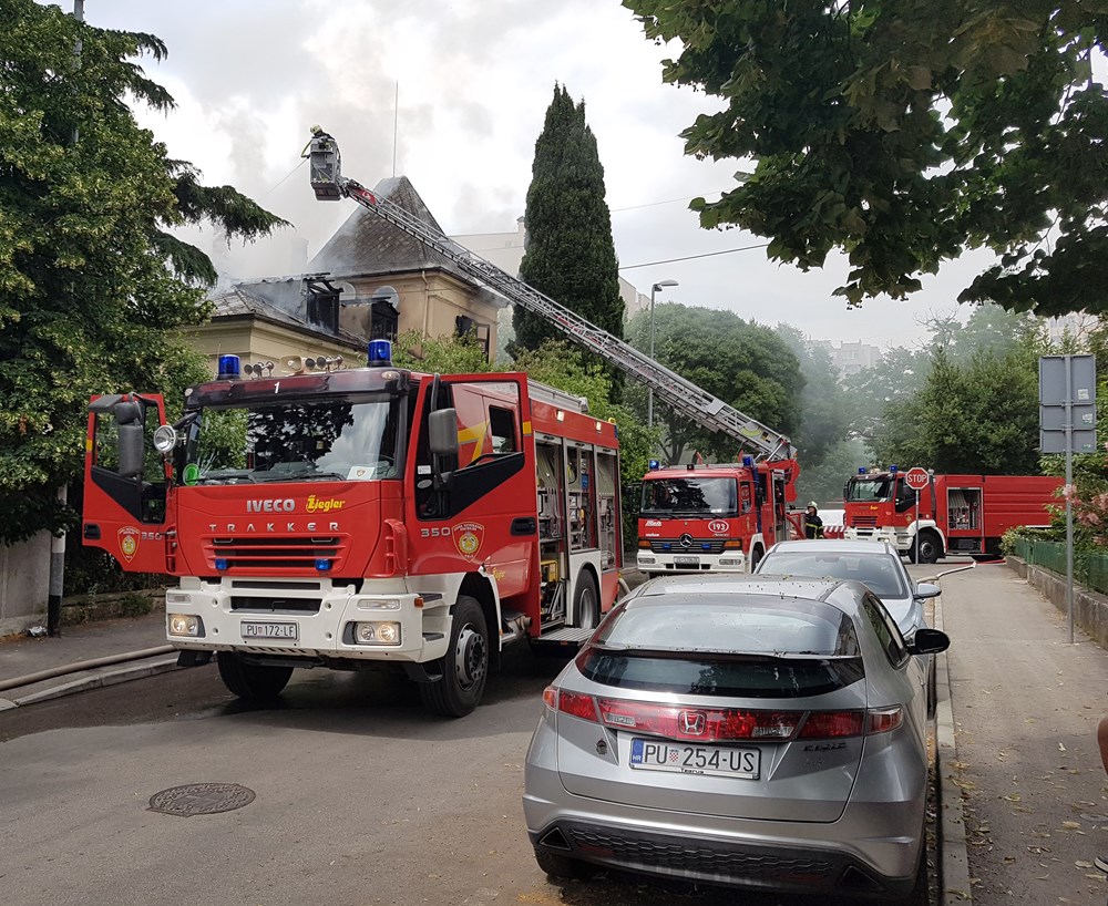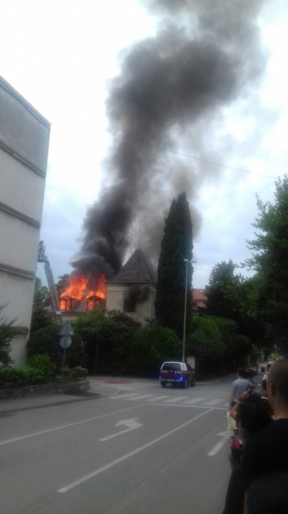 Vatrogasci su u intervenciju pozvani u 14.25 sati i brzom reakcijom spriječili širenje vatre na prizemlje. Gusti dim privukao je brojne znatiželjnike koji su u nevjerici promatrali kako plamen uništava krovište stare vile prekriveno azbestnim pločama.