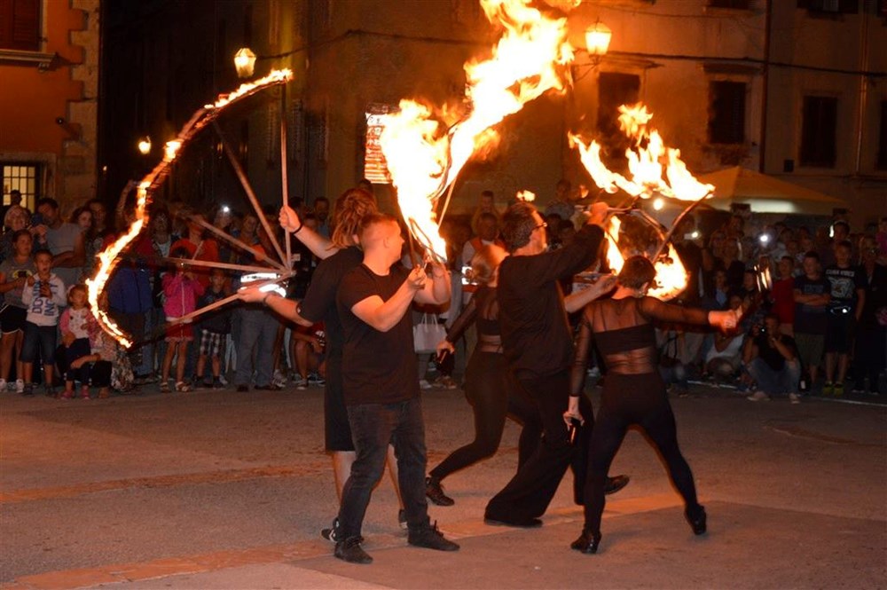 Skupina od deset žonglera vatrom, predvođena Sadinom Cerovac te u suradnji s porečkom udrugom USB, uprizorila vječnu borbu dobra i zla, svjetla i tame