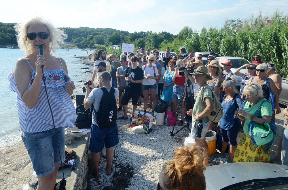 - Već je jutros investitor dio podmorja čistio s bagerom. Mi im zato danas nećemo pomagati nego ćemo čekati da oni sve sami počiste. Ali sve, a to se ne može počistiti bagerima, već rukama. Vi gledajte što rade i prijavljujte. Očekujemo da počiste sve, poručila je okupljenima Radojčić navodeći da je u razgovoru s građevinarima doznala da je riječ o vrlo jeftinom materijalu - tucaniku koji je topljiv u vodi i zato u moru ostaje bijeli trag. Ovim je, kazala je estetika uvale nepovratno uništena.