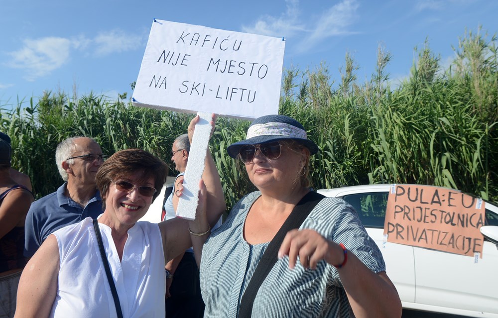 S transparentima "Javno, a ne privatno", "Gradonačelniče gdje ste?", "Pula - europska prijestolnica privatizacije" - više od stotinjak Puljana okupilo se u nedjelju popodne na velikoj prosvjednoj akciji koja je najavljena kao akcija čišćenja uvale Valovine. S kanticama i lopaticama u rukama prosvjednici su iz mora trebali izvlačili tucanik koji je ovdje nanio investitor u sklopu nedavnih radova. No, od akcije čišćenja se ipak odustalo.