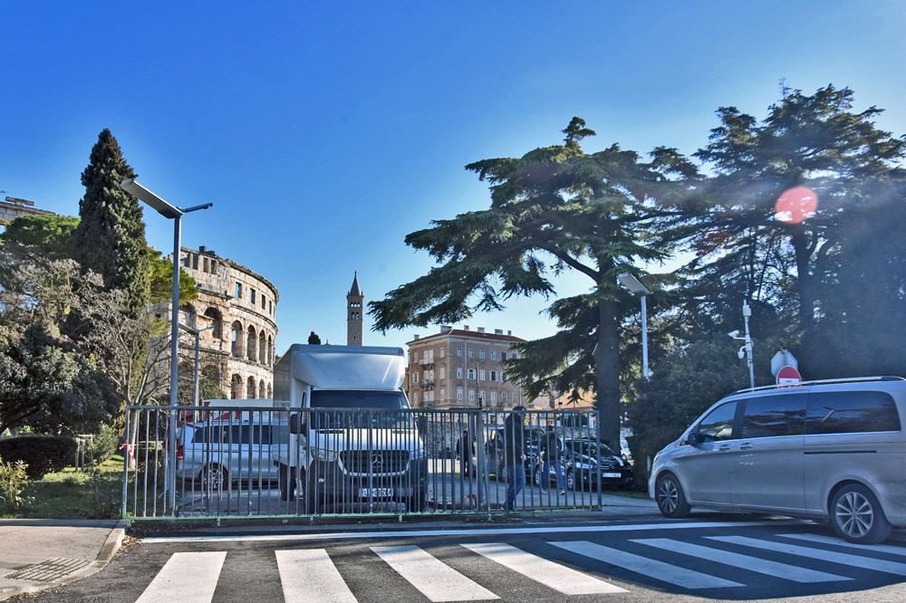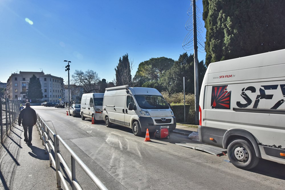 Na parkingu oko Arene te na obližnoj Karolini bili su parkirani ogromni šleperi pune filmske opreme, većinom s ljubljanskim registarskim tablicama.