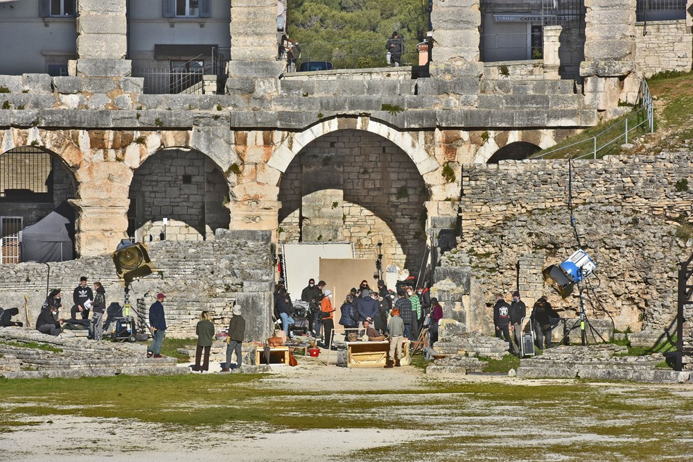 Jutros je u pulskoj Areni pala filmska klapa - kako doznajemo, mnogoljudna filmska ekipa iz Hrvatske i Slovenije snimala je kadrove u velebnom rimskom amfiteatru.