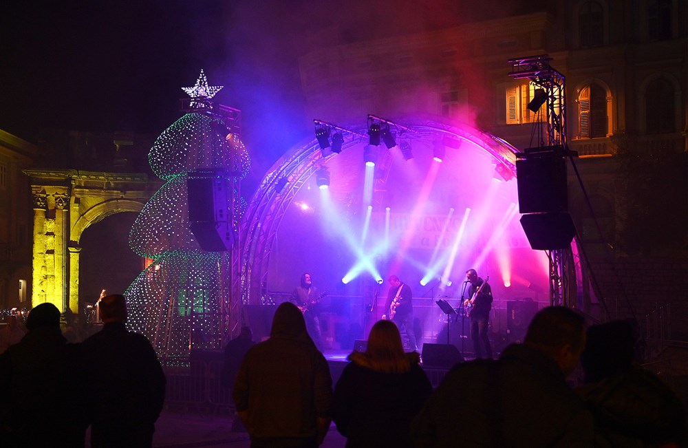 U sklopu programa Advent u Puli večeras je na Portarati svirala pulska grupa Žbrufador. Malobrojnu publiku u hladnoj večeri nisu zalili, a nije ih srećom zalila niti kiša.
