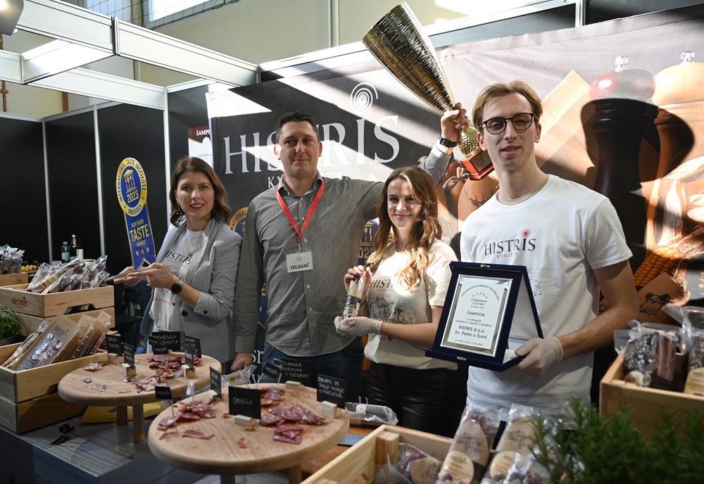 - Osim glavne nagrade, osvojili smo 11 zlatnih medalja što je najviše dosad. "Recept" naše visoke kvalitete je u tome što koristimo samo meso s hrvatskih farmi, ali i jako brinemo da održimo tradiciju tako da koristimo samo istarske začine, bez drugih aditiva. Primjerice, za istarsku kobasicu koristimo samo sol, papar te češnjak koji se prethodno kuha u malvaziji, kazala je Jasminka Benazić, direktorica marketinga u Histrisu koja smatra da su ovakve nagrade šlag na torti njihovog truda. "Proizvodimo tri skupine proizvoda, najviše svježe meso, set polutrajnih proizvoda, ali ipak smo najviše ponosni na trajne suhomesnate proizvode poput salame od jelena i tartufa s kojima smo drugu godinu zaredom šampioni sajma", dodao je Dalibor Matišić, direktor prerade mesa u Histrisu.