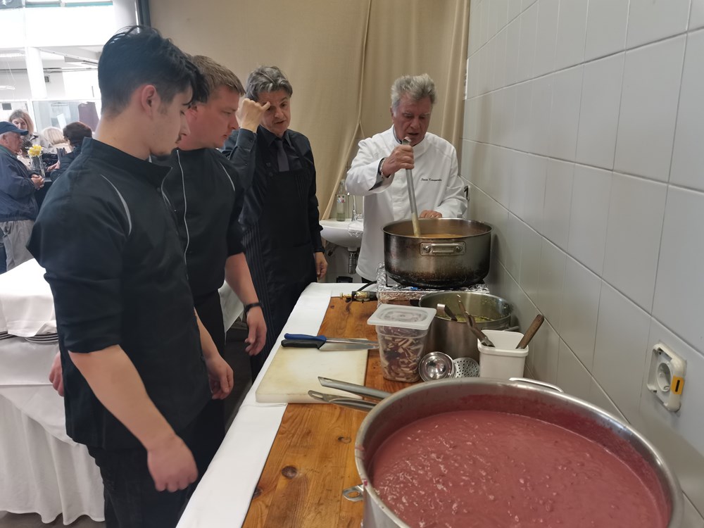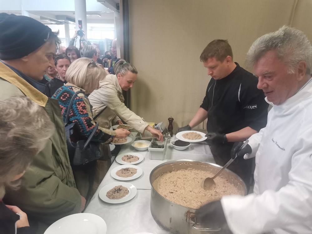 Labinski markat ugostio je u subotu prijepodne slavnog kuhara Stevu Karapandžu, starijim generacijama a posebice domaćicama poznatog i kao zaštitno lice jedne od najdugovječnije kulinarske TV emisije "Male tajne velikih majstora kuhinje" koju je 80-ih godina vodio s Ivom Serdarom i Oliverom Mlakarom. Stevo je uz potporu kuhara labinskog Velog Kafea, Igora, Tončija i vlasnika Lea Viškovića na pokaznoj radionici predstavio kako napraviti zdrava, ali jednostavna jela, od lokalnih namirnica koje je moguće kupiti i na labinskom markatu. Zajedno su pripremili i podijelili dvjestotinjak porcija rižota s povrćem i radićem te pljukance sa šparogama i pršutom.