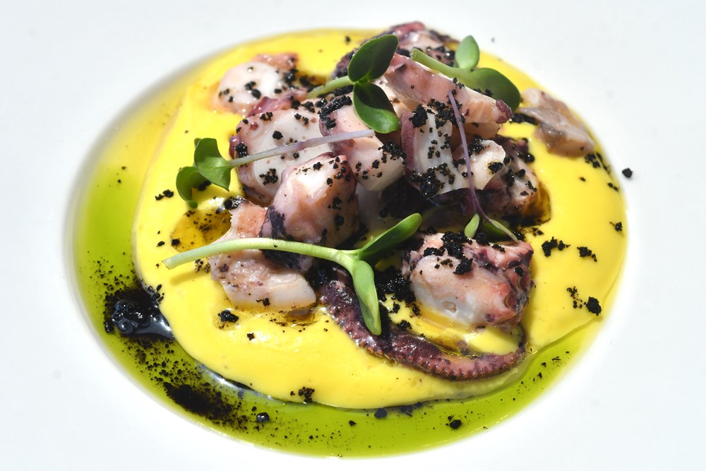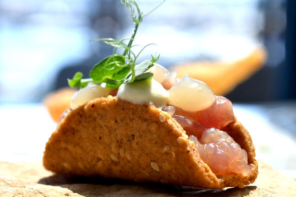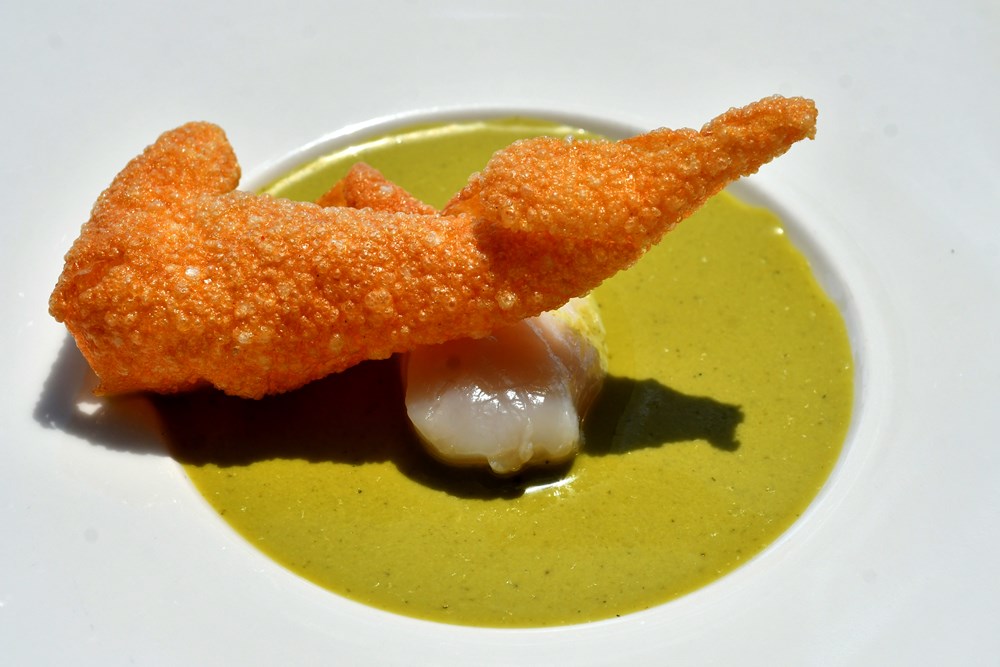 - Imamo sirovu Jakobovu kapicu u ceviche umaku od zelenih trava i citrus nota uz čips napravljen od jezika Jakobove kapice jer težimo u kuhinji razvijati "zero waste" koncepciju, odnosno u jelu maksimalno uporabiti sve iskoristive dijelove namirnica. Drugi segment ovog "hladnog pjata" je carpaccio od hobotnice, a imamo i sirove škampe na emulziji od krumpira i potočarke, s uljem od vlasca. Za ljubitelje školjki tu su dondole koje su se pirjale na maslacu s češnjakom, a tu je i jedna modernija varijanta taca napravljenog od lješnjaka i sezama u kojem se nalazi tuna tartar, a na njemu je još i gel od jabuke te jogurt, pojasnio nam je chef Luka.