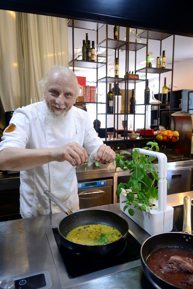 A da su začini ti koji čine razliku, dokazuju i suvremene posude u kojima uzgajaju biljke pod posebnim uvjetima. Riječ je, kaže nam Zembo, o američkom stilu proizvodnje mikrobilja i povrća, koji se koristi i u svemiru. Uz pomoć tehnologije imitiraju se zemlja i gliste. Kaže da je čak 70 posto veća iskoristivost nego kod povrća koje izrasta na klasičan način. To su bosiljak, menta, salata, papričice, wasabi, cherry rajčice. A s obzirom da se biljke nalaze na zidu restorana, Zembo ih koristi tijekom pripreme gotovo svakog jela.