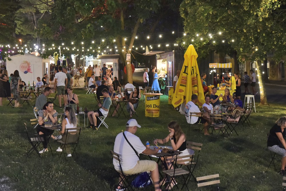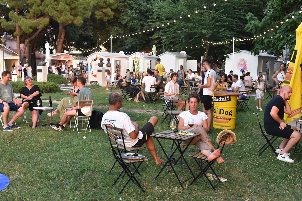 Sve navedeno bilo je dovoljan razlog za brojne Puljane i goste da se okupe večeras u ovom parku na pulskoj Rivi, a kad su minule zrake sunca, tako je u Titov park pristizalo sve više posjetitelja svih generacija. Vinski park je tim više zanimljiv jer je uređen kao više vrlo ukusno uređenih lounge zona, gdje je posjetiteljima osigurana opuštena atmosfera i pravo hedonističko guštanje u ljetnoj večeri uz piće po izboru.