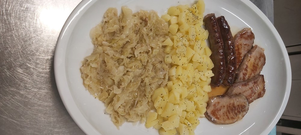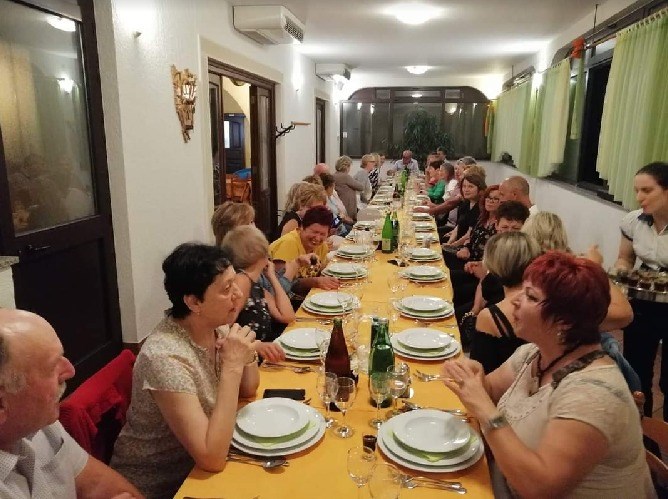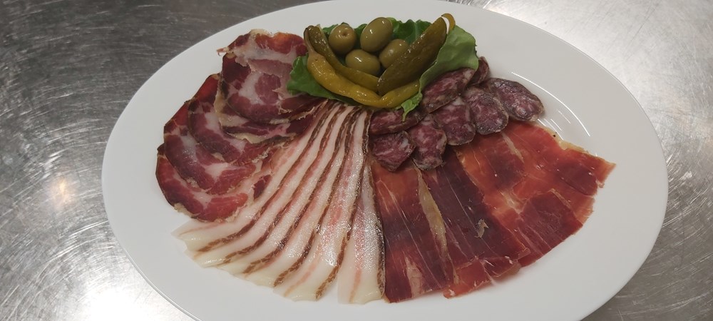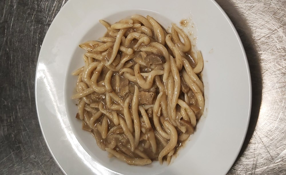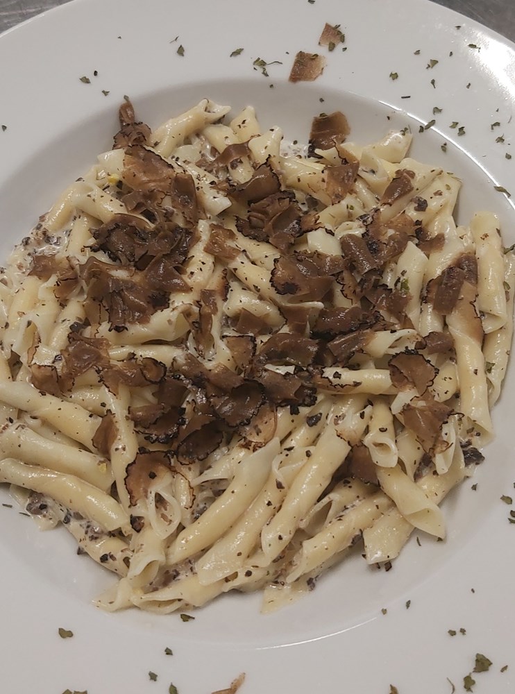 Na pitanje od čega se sastoji jedan njihov uobičajeni jelovnik kaže nam da on počinje sa sezonskom juhom (vrganji, lisičarke, pomidori, povrtna ili goveđa) ili maneštra, zatim slijedi tjestenina s domaćim jajima (fuži na žbicu, njoki, makaruni, ravioli…) koju Adriano ručno radi a servira se s raznim umacima poput junetine, srnetine, kokoši, tartufa. Za vegetarijance imaju umak od pet vrsta sira, ali i umake od gljiva (vrganji, lisičarke, crne trubače…).