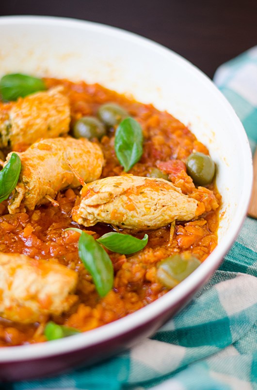 Poslužite vruću puretinu s pratećim umakom od maslina.